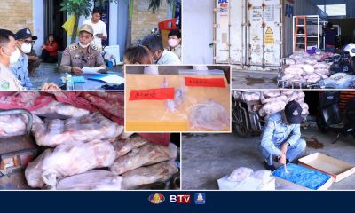 បន្ទាយមានជ័យ៖ លោក ឃ្លោក នួយ អភិបាលរងខេត្តតំណាងឲ្យឯកឧត្តម អុំ រាត្រី អភិបាល នៃគណៈអភិបាលខេត្ត បានដឹកនាំក្រុមការងារចម្រុះ និងអាជ្ញាធរមូលដ្ឋាន ចុះពិនិត្យមើលទីតាំងឃ្លាំង២កន្លែងដែលបានស្តុបទុកសាច់បង្កក ស្ថិតនៅភូមិបាលិលេយ្យ២ និងភូមិបាលិលេយ្យ១ សង្កាត់ប៉ោយប៉ែត ក្រុងប៉ោយប៉ែត ខេត្តបន្ទាយមានជ័យ នាថ្ងៃទី២៧ ខែវិច្ឆិកា ឆ្នាំ ២០២៥។ ក្នុងការចុះពិនិត្យពេលនោះដែរ មន្ត្រីជំនាញបានដកហូតយកសាច់បង្កកចំនួន ៦ប្រភេទដូចជា ទាមូល ចុងស្លាបមាន់...