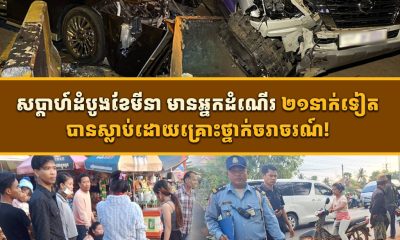 ក្នុងរយៈពេល៧ថ្ងៃ នៃសប្ដាហ៍ទី១ គិតចាប់ពីថ្ងៃទី១ ដល់ថ្ងៃទី៧ ខែមីនា ឆ្នាំ២០២៦ មានករណីគ្រោះថ្នាក់ចរាចរណ៍ផ្លូវគោកទូទាំងប្រទេស កើតឡើងចំនួន៤១ករណី បណ្តាលឱ្យមានមនុស្សស្លាប់២១នាក់ និងរងរបួសធ្ងន់ស្រាល៥៥នាក់។ នេះបើតាមរបាយការណ៍ក្រសួងមហាផ្ទៃ។ របាយការណ៍លម្អិតថា ករណីគ្រោះថ្នាក់ចរាចរណ៍នោះ រួមមាន ថ្ងៃទី១មីនា មាន៥ករណី ស្លាប់១នាក់ របួស៧នាក់ ថ្ងៃទី២ មាន៦ករណី ស្លាប់៣នាក់ របួស៤នាក់ ថ្ងៃទី៣ មាន៩ករណី ស្លាប់៣នាក់ របួស១៤នាក់...