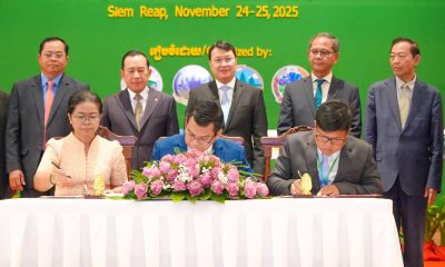 ឯកឧត្តមរដ្ឋមន្ត្រីក្រសួងទេសចរណ៍ រួមជាមួយឯកឧត្តមរដ្ឋមន្ត្រីក្រសួងកសិកម្ម រុក្ខាប្រមាញ់ និងនេសាទ អញ្ជើញជាអធិបតីក្នុងពិធីចុះហត្ថលេខាលើអនុស្សរណៈយោគយល់គ្នាចំនួន ៤ ក្នុងការបង្កើតបណ្តាញអេកូទេសចរណ៍ថ្មី ចំនួន ២ ឯកឧត្តម ហួត ហាក់ រដ្ឋមន្ត្រីក្រសួងទេសចរណ៍ និងជាប្រធានគណៈកម្មាធិការជាតិគ្រប់គ្រង និងអភិវឌ្ឍសហគមន៍ទេសចរណ៍ និងអេកូទេសចរណ៍ រួមជាមួយ ឯកឧត្តម ឌិត ទីណា រដ្ឋមន្ត្រីក្រសួងកសិកម្ម រុក្ខាប្រមាញ់ និងនេសាទ និងជាអនុប្រធានគណៈកម្មាធិការជាតិគ្រប់គ្រង និងអភិវឌ្ឍសហគមន៍ទេសចរណ៍និងអេកូទេសចរណ៍ អញ្ជើញជាអធិបតីក្នុងពិធីចុះហត្ថលេខាលើអនុស្សរណៈនៃការយោគយល់គ្នាចំនួន៤...