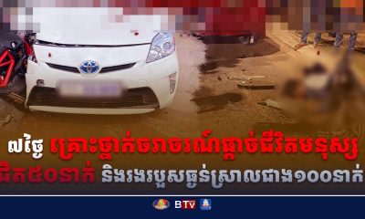 រយៈពេលត្រឹមតែ៧ថ្ងៃ គិតចាប់ពីថ្ងៃទី១៧ រហូតដល់ថ្ងៃទី២៣ ខែវិច្ឆិកា ឆ្នាំ២០២៥នេះ ហេតុការណ៍គ្រោះថ្នាក់ចរាចរណ៍ផ្លូវគោកនៅទូទាំងប្រទេស បានបន្តកើតឡើងចំនួន៦៩ករណី បណ្តាលឱ្យមានមនុស្សស្លាប់ចំនួន ៤៤នាក់ និងរងរបួសធ្ងន់ស្រាលចំនួន ១២០នាក់។ នេះបើតាមលោក ទូច សុឃៈ អ្នកនាំពាក្យរងក្រសួងមហាផ្ទៃ។ បើតាមអ្នកនាំពាក្យរង ករណីគ្រោះថ្នាក់ចរាចរណ៍នោះ រួមមាន នៅថ្ងៃទី១៧វិច្ឆិកា មាន៨ករណី ស្លាប់៥នាក់ របួស៩នាក់ ថ្ងៃទី១៨ មាន៧ករណី ស្លាប់១នាក់ របួស៩នាក់...