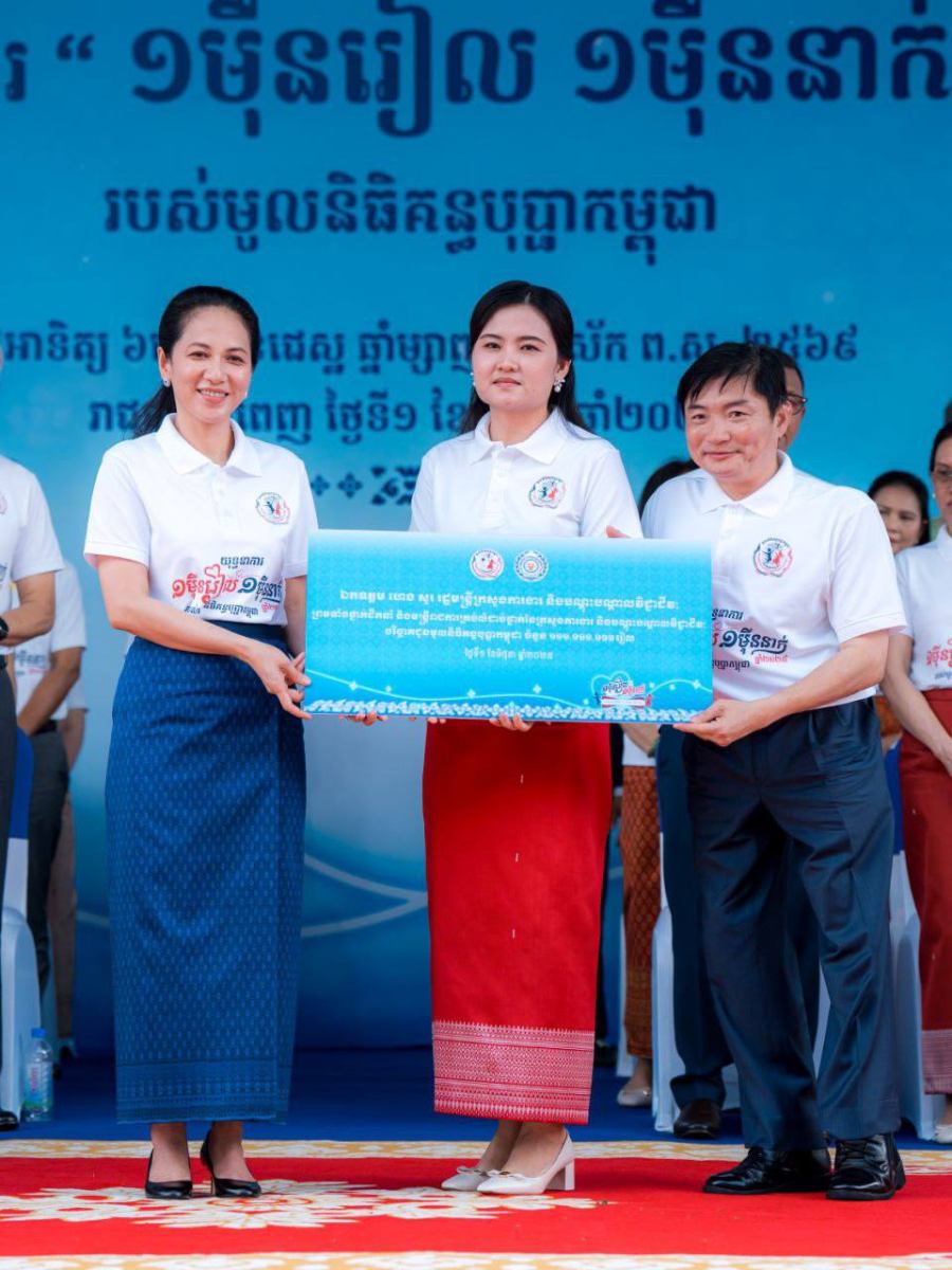 (ភ្នំពេញ)៖ ឯកឧត្តមរដ្ឋមន្ត្រី ហេង សួរ និងលោកជំទាវ រួមទាំងថ្នាក់ដឹកនាំ និងមន្ត្រីរាជការនៃក្រសួងការងារ និងបណ្តុះបណ្តាលវិជ្ជាជីវៈ នៅព្រឹកថ្ងៃអាទិត្យ ទី១ ខែមិថុនា ឆ្នាំ២០២៥នេះ បានបរិច្ចាគថវិកាចំនួន ១១១,១១១,១១១ រៀល ជូនមូលនិធិគន្ធបុប្ផាកម្ពុជា ដើម្បីគាំទ្រយុទ្ធនាការ «១ម៉ឺនរៀល ១ម៉ឺននាក់» ដែលផ្ដួចផ្ដើម និងដឹកនាំដោយលោកជំទាវបណ្ឌិត ពេជ ចន្ទមុន្នី ហ៊ុនម៉ាណែត ប្រធានកិត្តិយសមូលនិធិគន្ធបុប្ផាកម្ពុជា។