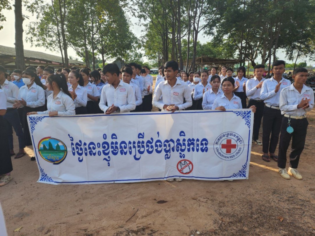 កំពង់ធំ ៖ នៅព្រឹកថ្ងៃទី២០ ខែមិថុនា ឆ្នាំ២០២៥ ក្រុមការងារឥស្សរជនឆ្នើមថ្នាក់ជាតិ កាកបាទក្រហមកម្ពុជាថ្នាក់កណ្តាល សហការជាមួយសាខាកាកបាទក្រហមកម្ពុជាខេត្តកំពង់ធំ អនុសាខាស្រុកកំពង់ស្វាយ បានចុះអប់រំផ្សព្វផ្សាយស្ដីអំពី “រួមគ្នាជាមួយកាកបាទក្រហមកម្ពុជា ដើម្បីសហគមន៍មានសុខភាពល្អ និងមានភាពធននិងអាកាសធាតុ” ព្រមទាំងដាំកូនឈើចំនួន៦០ ដើមដឹកនាំដោយលោកបណ្ឌិត វ៉ា សុភ័ក្រ្ត ប្រធានការិយាល័យការពារជំងឺឆ្លង និងមិនឆ្លង កាកបាទក្រហមកម្ពុជា នាយកសាខាកាកបាទក្រហមកម្ពុជា ខេត្តកំពង់ធំ រួមជាមួយមន្ត្រីក្រុមប្រតិបត្តិ មន្ត្រីអនុសាខា យុវជនកាកបាទក្រហម ដោយមានការការចូលពីសិស្សានុសិស្ស សរុបចំនួន៣០០នាក់ នៅក្នុងវិទ្យាល័ យហ៊ុនសែន ត្បែង ស្រុកកំពង់ស្វាយ ខេត្តកំពង់ធំ។