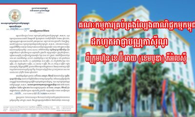 ព័ត៌មាន4 days agoរាជរដ្ឋាភិបាលកម្ពុជាបានតវ៉ាជាផ្លូវការជាថ្មីទៀត ចំពោះសកម្មភាពខុសច្បាប់របស់ថៃកាន់កាប់នៅតំបន់ភូមិជោគជ័យ និងច្រកទ្វារអន្តរជាតិអូរស្មាច់