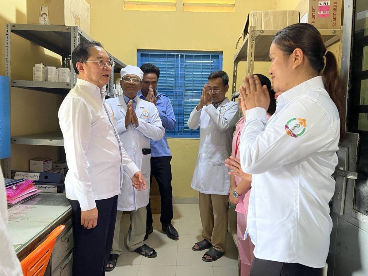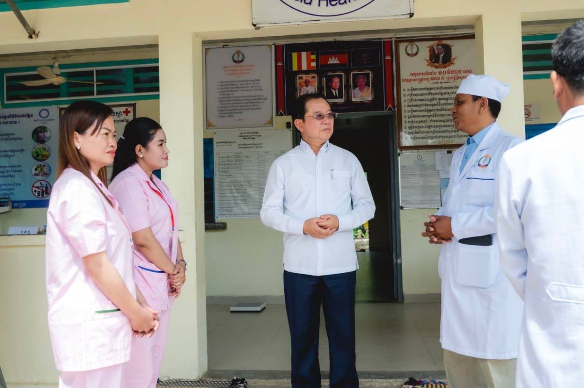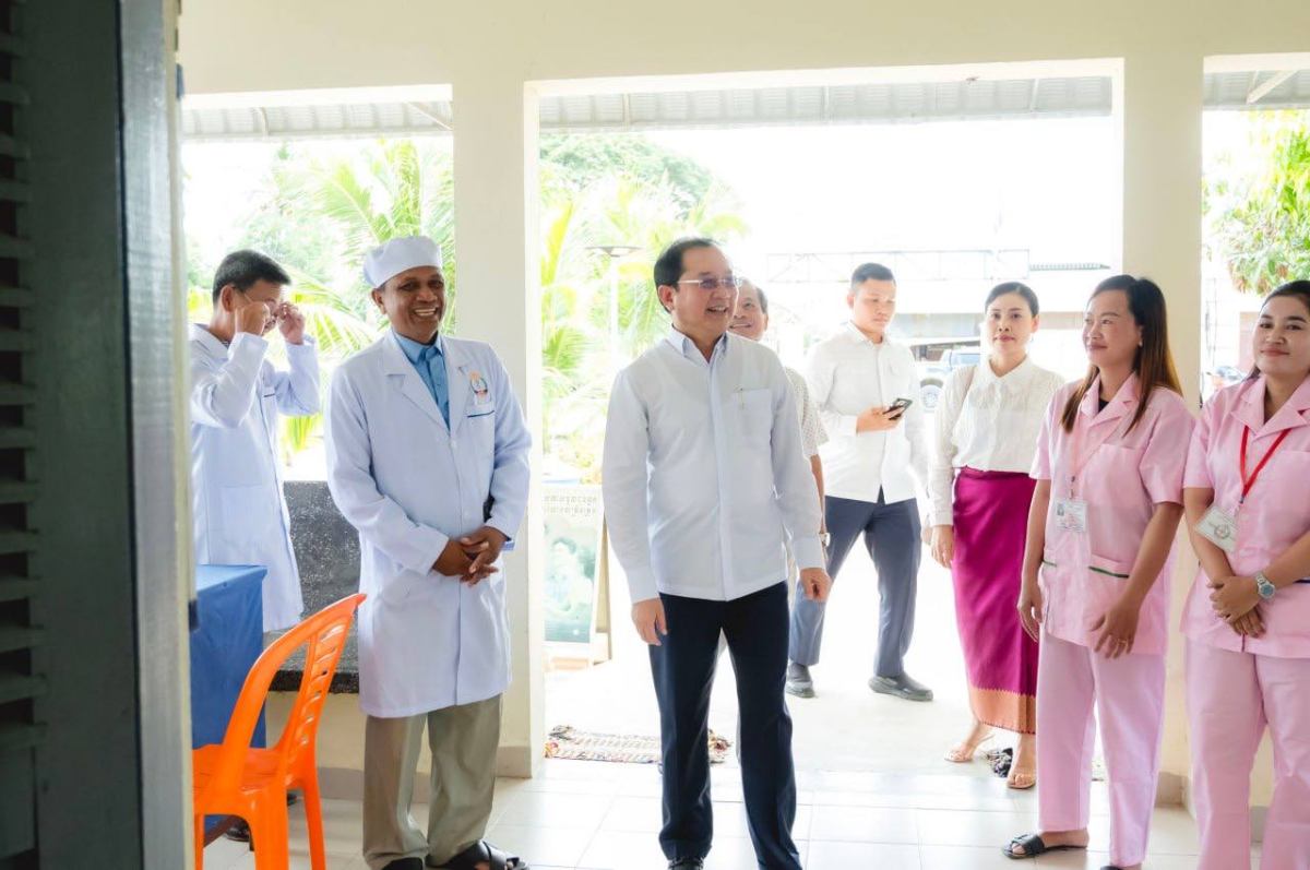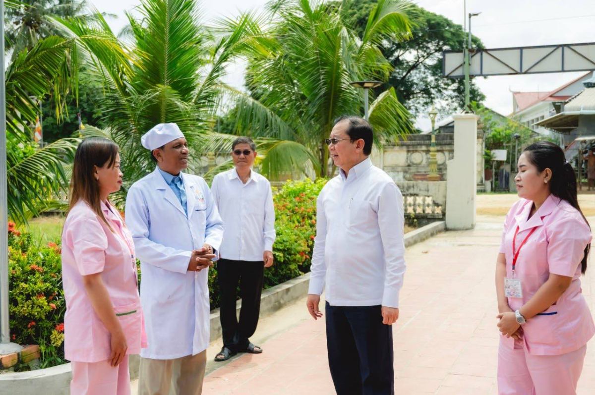 តាកែវ ៖ ឯកឧត្តមសាស្រ្តាចារ្យ ឈាង រ៉ា រដ្ឋមន្រ្តីក្រសួងសុខាភិបាល ចុះសួរសុខទុក្ខមន្រ្តី និងបុគ្គលិកសុខាភិបាល ដែលកំពុងបម្រើសេវាសុខាភិបាល នៅមណ្ឌលសុខភាពក្រាំងស្លា ក្នុងឱកាសអញ្ជើញដាក់បិណ្ឌនៅខេត្តតាកែវ, កាលពីថ្ងៃទី១៣ ខែកញ្ញា ឆ្នាំ២០២៥។