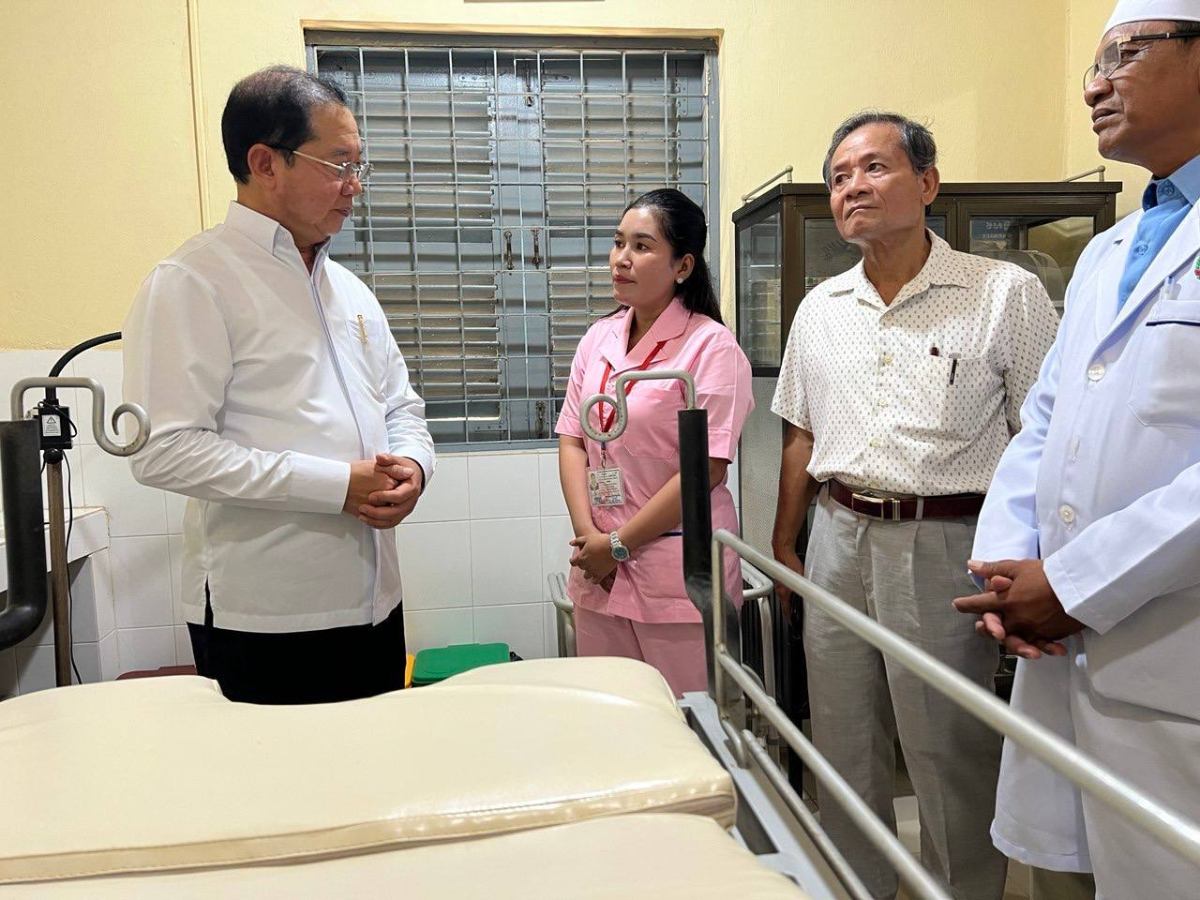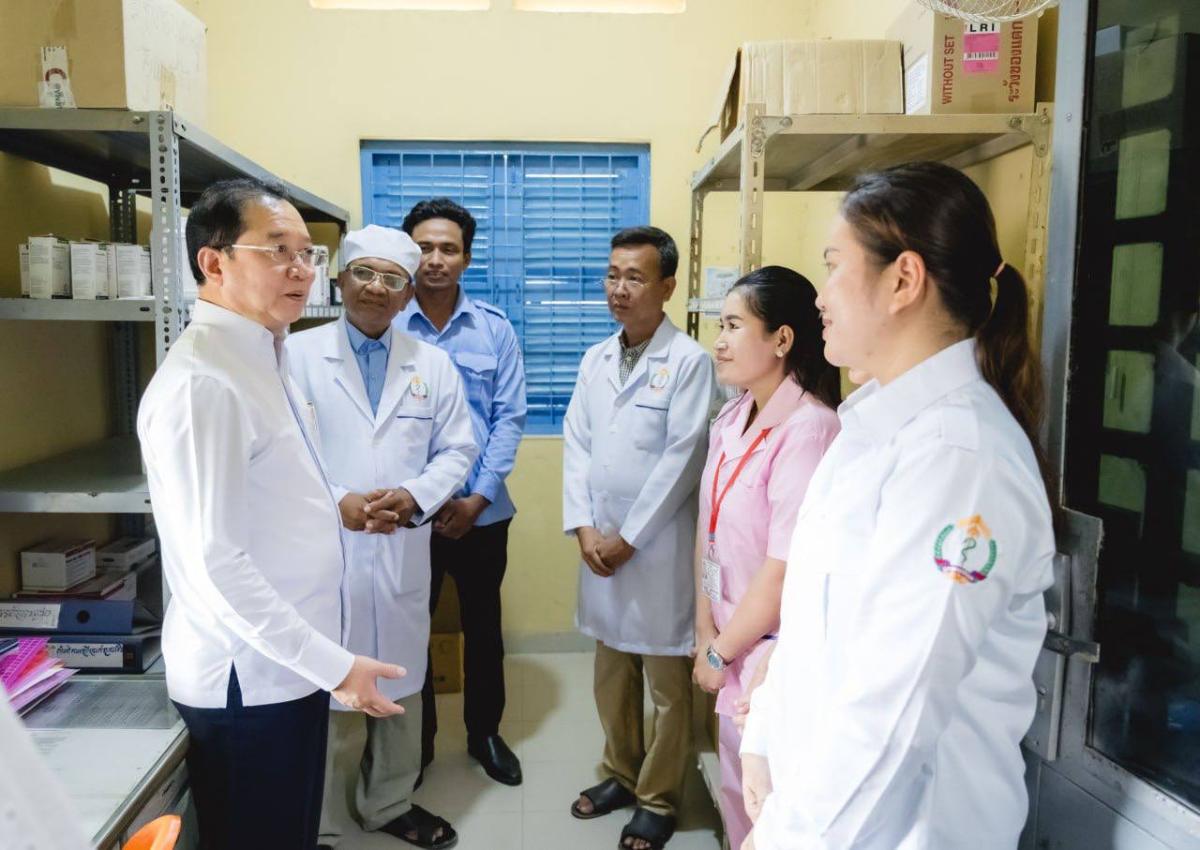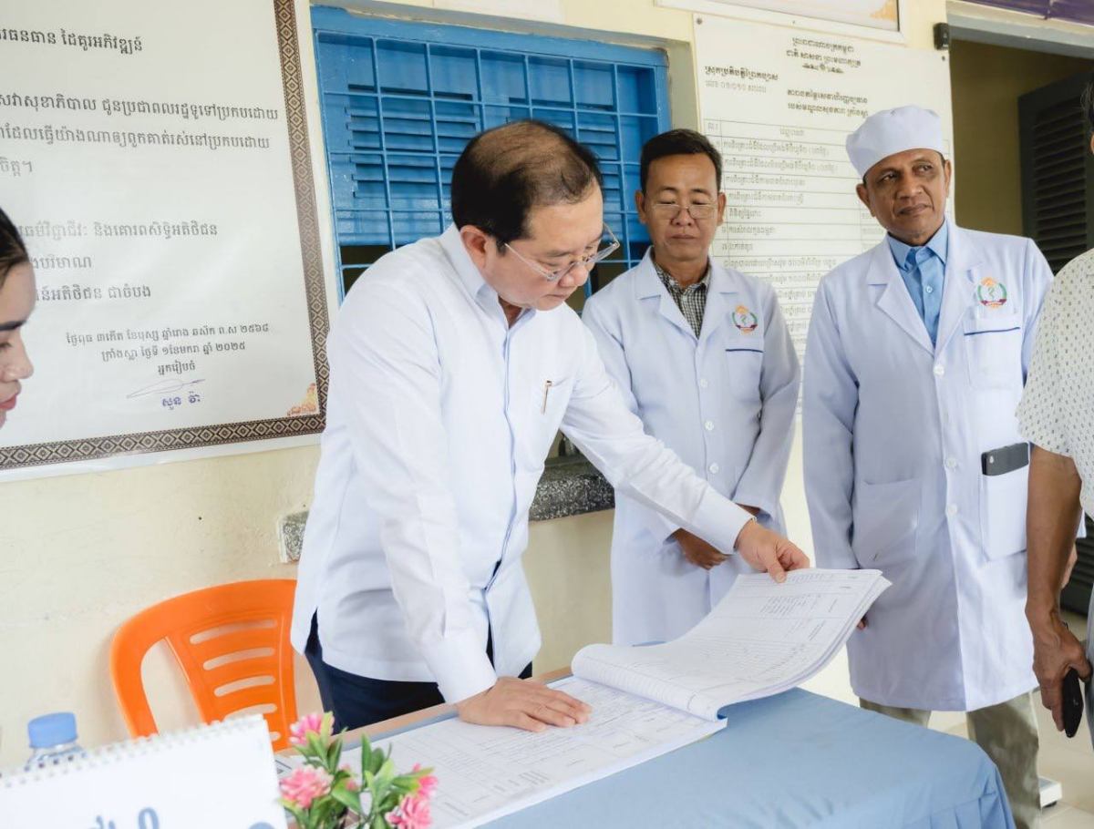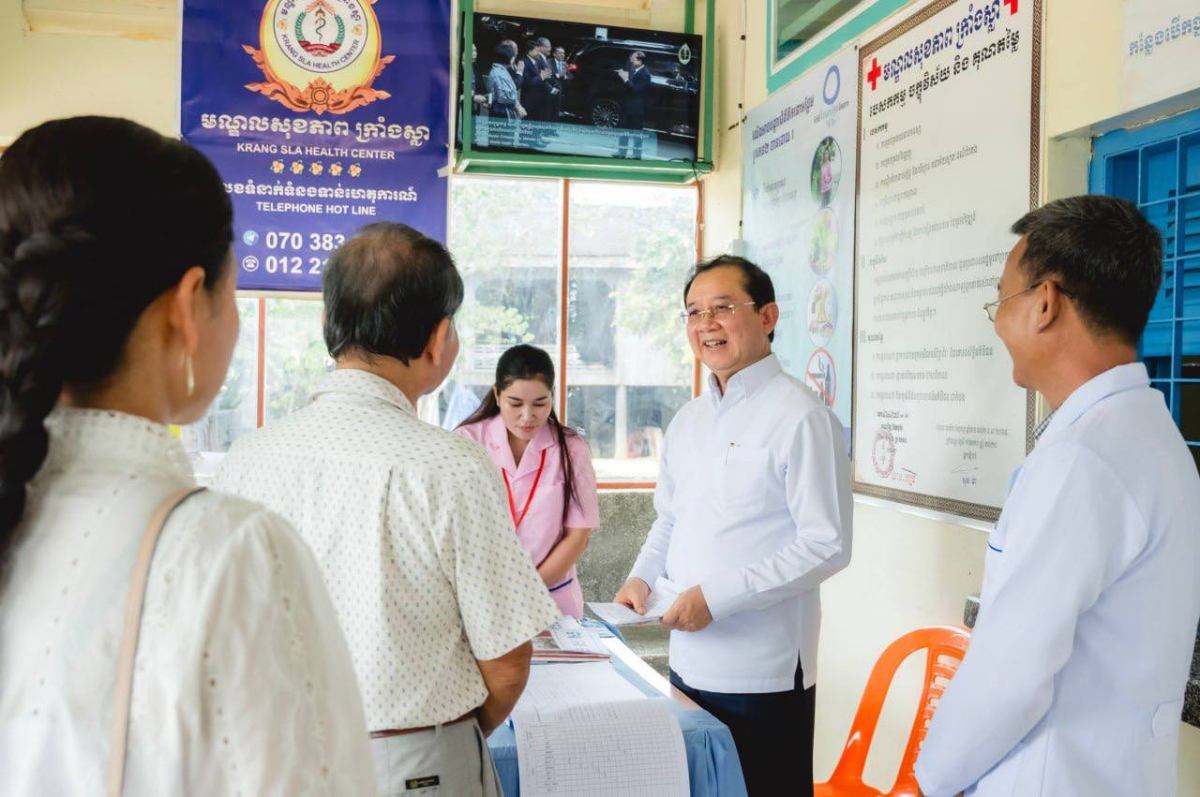 តាកែវ ៖ ឯកឧត្តមសាស្រ្តាចារ្យ ឈាង រ៉ា រដ្ឋមន្រ្តីក្រសួងសុខាភិបាល ចុះសួរសុខទុក្ខមន្រ្តី និងបុគ្គលិកសុខាភិបាល ដែលកំពុងបម្រើសេវាសុខាភិបាល នៅមណ្ឌលសុខភាពក្រាំងស្លា ក្នុងឱកាសអញ្ជើញដាក់បិណ្ឌនៅខេត្តតាកែវ, កាលពីថ្ងៃទី១៣ ខែកញ្ញា ឆ្នាំ២០២៥។