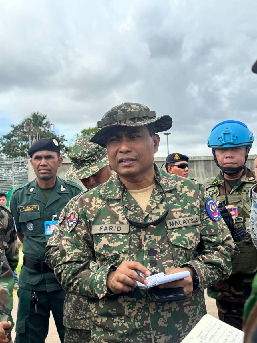 សូមជម្រាបថា កាលពីរសៀលថ្ងៃទី១០ ខែកញ្ញា ឆ្នាំ២០២៥ ក្រសួងការពារជាតិកម្ពុជា បានសម្របសម្រួលទទួលដំណើរអញ្ជើញដល់របស់ក្រុមអ្នកសង្កេតកាណ៍អន្តរកាល (IOT) ដឹកនាំដោយឧត្តមសេនីយ៍ត្រី Dato’ Pahlawan Asri bin Shukor នាយក នាយកដ្ឋានបណ្តុះបណ្តាល នៃបញ្ជាការដ្ឋានកងទ័ពជើងគោកម៉ាឡេស៊ី និងជាប្រធានបេសកកម្ម IOT (HOM) និងតំណាងមកពីប្រទេសម៉ាឡេស៊ី ឥណ្ឌូនេស៊ី និងហ្វីលីពីន នៅអាកាសយាន្តដ្ឋានអន្តរជាតិតេជោ។