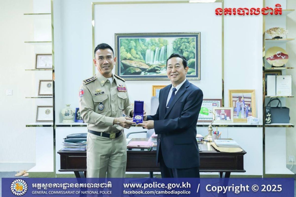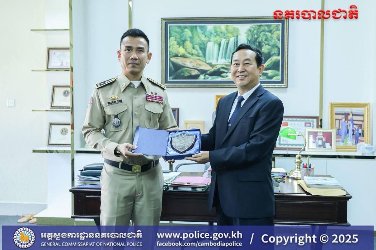 ដោយមានការអនុញ្ញាតពីឯកឧត្តម នាយឧត្តមសេនីយ៍ ស ថេត អគ្គស្នងការនគរបាលជាតិ នៅព្រឹកថ្ងៃទី២៥ ខែកញ្ញា ឆ្នាំ២០២៥នេះ ឯកឧត្តម ឧត្តមសេនីយ៍ឯក ឌី វិជ្ជា អគ្គស្នងការរងនគរបាលជាតិ បានទទួលជួបសម្តែងការគួរសម និងពិភាក្សាការងារជាមួយលោក WANG ZHIJUN ស្នងការរងនៃស្នងការដ្ឋាននគរបាលខេត្តគួយចូវ នៃប្រទេសចិន នៅអគ្គស្នងការដ្ឋាននគរបាលជាតិ។ កិច្ចជំនួបនេះគឺមានគោលបំណងដើម្បីលើកកម្ពស់ទំនាក់ទំនងកិច្ចសហប្រតិបត្តិការអនុវត្តច្បាប់នៃស្ថាប័ន អនុវត្តច្បាប់នៃប្រទេសទាំងពីរ(កម្ពុជា-ចិន)៕
