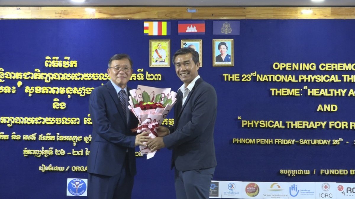 ភ្នំពេញ ៖ ឯកឧត្តមវេជ្ជបណ្ឌិត ស៊ិក ប៊ុណ្ណា រដ្ឋលេខាធិការ តំណាងដ៏ខ្ពង់ខ្ពស់ឯកឧត្តមសាស្ត្រាចារ្យ ឈាង រ៉ា រដ្ឋមន្ត្រីក្រសួងសុខាភិបាល និងឯកឧត្តម សែម សុខា រដ្ឋលេខាធិការក្រសួងសង្គមកិច្ច អតីតយុទ្ធជន និងយុវនីតិសម្បទា បានអញ្ជើញបើកសន្និបាតជាតិព្យាបាលដោយចលនាលើកទី២៣ ក្រោមប្រធានបទ«សុខភាពមនុស្សចាស់» និង «ការព្យាបាលដោយចលនា ដើម្បីស្តារលទ្ធភាពពលកម្ម» ដែលរៀបចំឡើងដោយសមាគមពេទ្យព្យាបាលដោយចលនាកម្ពុជា សហការជាមួយដៃគូពាក់ព័ន្ធ, រយៈពេល០២ថ្ងៃ ចាប់ពីថ្ងៃទី២៦-២៧ ខែកញ្ញា ឆ្នាំ២០២៥។