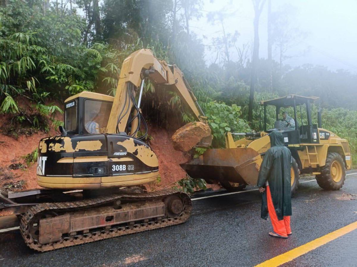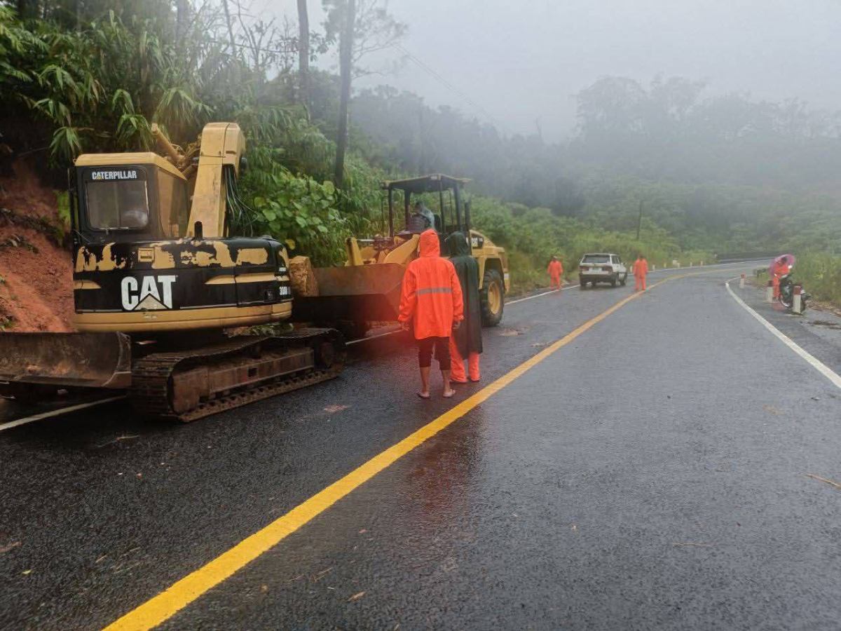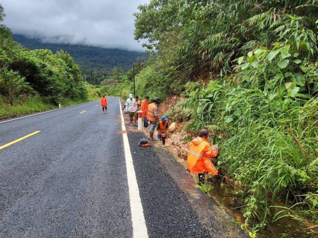 កំណាត់ផ្លូវជាតិលេខ៥៥ត្រង់ចំណុចភ្នំ១៥០០បាក់ដីគ្រប់លើផ្លូវ ដោយសារភ្លៀងជាប់ៗគ្នាខ្លាំងពេក