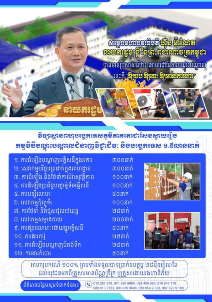 វិទ្យាស្ថានពហុបច្ចេកទេសភូមិភាគតេជោសែនស្វាយរៀង ផ្តល់អាហារូបករណ៍ ១៣២៥កន្លែង លើ ១២មុខជំនាញ និងប្រាក់ឧបត្ថម្ភ ដល់យុវជនមកពីគ្រួសារក្រីក្រ និងគ្រួសារងាយរងហានិភ័យ
