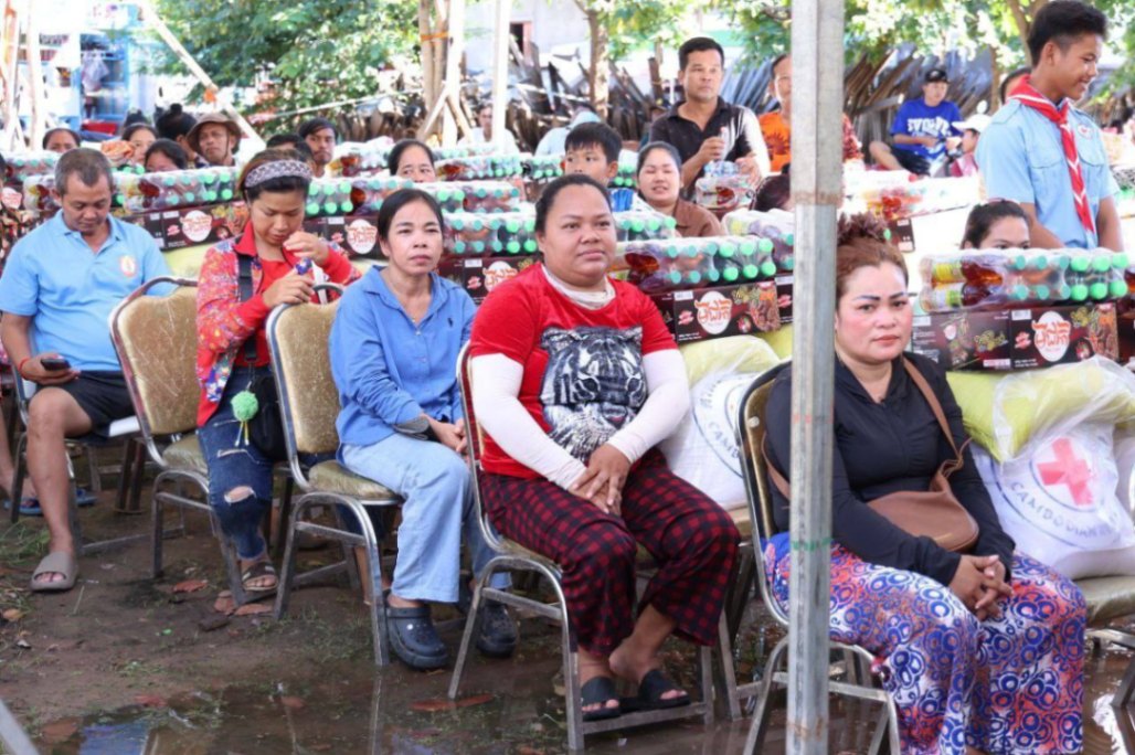 ប្រតិភូសាខាបានឧបត្ថម្ភអំណោយជូនជនរងគ្រោះក្នុង១គ្រួសារទទួលបាន៖ អង្ករ ២៥ គីឡូក្រាម មី ១កេស ទឹកស៊ីអ៊ីវ ១យួរ ទឹកត្រី ១យួរ និងថវិកាចំនួន ៥ម៉ឺនរៀល។ ជាមួយគ្នានេះផងដែរ អនុសាខា កក្រក ស្រុកកៀនស្វាយ បានផ្តល់ជូនបន្ថែមក្នុង ១គ្រួសារ អង្ករ ១០គីឡូក្រាម និងថវិកា ២ម៉ឺនរៀល។