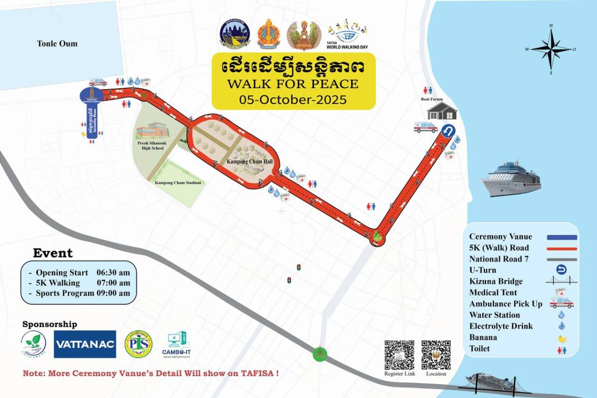 រដ្ឋបាលខេត្តកំពង់ចាមរៀបំព្រឹត្តិការណ៍ ទិវាដើរពិភពលោក «ដើរដើម្បីសន្តិភាព» នៅថ្ងៃស្អែក
