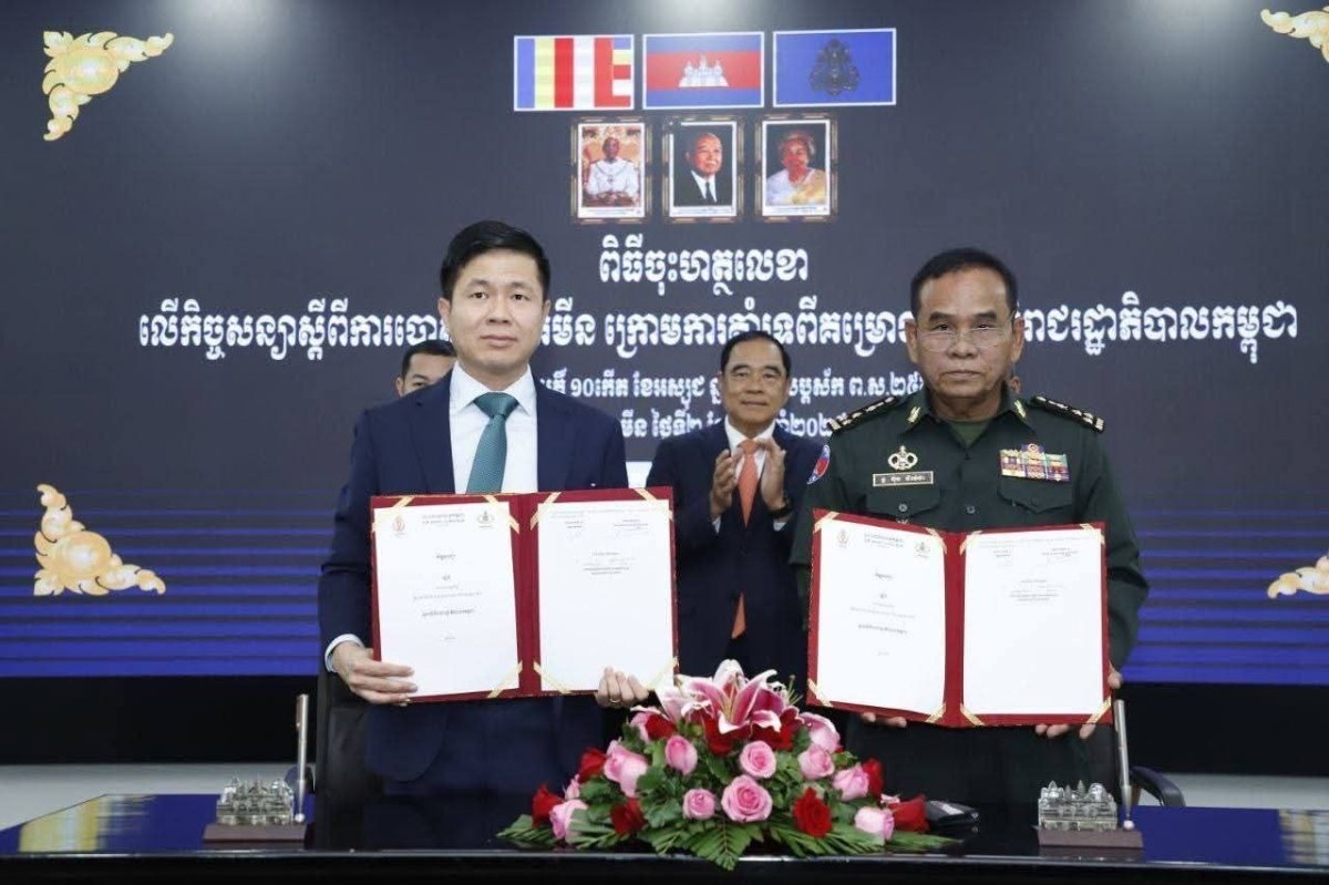 សូមបញ្ជាក់ថ្ងៃទី០២ ខែតុលា ឆ្នាំ២០២៥ នៅទីស្នាក់ការអាជ្ញាធរមីន តាងនាមឱ្យ សម្តេចមហាបវរធិបតី ហ៊ុន ម៉ាណែត នាយករដ្ឋមន្រ្តី និងជាប្រធានអាជ្ញាធរមីន ឯកឧត្តមទេសរដ្ឋមន្រ្តី លី ធុជ អនុប្រធានទី១អាជ្ញាធរមីន បានអញ្ជើញជាអធិបតីក្នុងពិធីចុះហត្ថលេខាលើកិច្ចសន្យាបោសសម្អាតមីន គាំទ្រពីគម្រោងមូលនិធិរាជរដ្ឋាភិបាលកម្ពុជា ដែលការចុះហត្ថលេខានេះ ប្រព្រឹត្តិទៅរវាងអាជ្ញាធរមីន ជាមួយបញ្ជាការដ្ឋានកងទ័ពជើងគោក មជ្ឈមណ្ឌលជាតិគ្រប់គ្រងកងកម្លាំងរក្សាសន្តិភាព បោសសម្អាតមីន និងកាកសំណល់សង្រ្គាម និងមជ្ឈមណ្ឌលសកម្មភាពកំចាត់មីនកម្ពុជា។ ពិធីចុះហត្ថលេខានេះនឹងត្រូវធ្វើការបោសសម្អាតផ្ទៃដីមានមីនចំនួន ៤១.៧៩៦.២៦៣ ម៉ែត្រការ៉េ ស្មើនឹង ៤៥៣ ចម្ការមីន ក្នុងខេត្តចំនួន ០៦ រួមមាន ខេត្តបន្ទាយមានជ័យ ខេត្តឧត្តរមានជ័យ ខេត្តសៀមរាប ខេត្តបាត់ដំបង ខេត្តព្រះវិហារ និងខេត្តពោធិ៍សាត់ ដោយប្រើប្រាស់ថវិកាសរុបចំនួន ៥លានដុល្លារសហអាមេរិក។