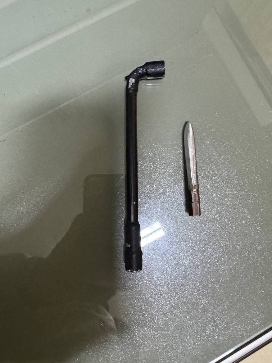 ១៖ ឈ្មោះ ទក ពិសិដ្ឋ ភេទប្រុស អាយុ៣២ឆ្នាំ ជនជាតិខ្មែរ ២៖ ឈ្មោះ កែវ សាន ភេទប្រុស អាយុ៤៧ឆ្នាំ ជនជាតិខ្មែរ ដកហូតវត្ថុតាង ដែកសំប៉ែតមុខស្រួចចំនួន ១ដើម និងសោរទីបលេខ៨ ចំនួន ១ដើម (ឧបករណ៍សម្រាប់កាច់សោរកម៉ូតូ) និងម៉ូតូ ១គ្រឿង ម៉ាក Yamaha Nouvo ពណ៌ស-ខៀវ ពាក់ផ្លាកលេខភ្នំពេញ1L-4471។