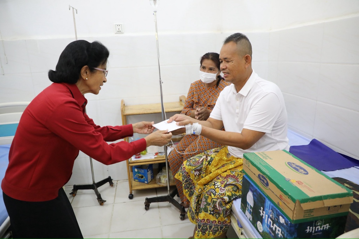 សម្តេចកិត្តិព្រឹទ្ធបណ្ឌិត ប៊ុន រ៉ានី ហ៊ុនសែន ចាត់តំណាងចុះសួរសុខទុក្ខ និងនាំយកអំណោយមនុស្សធម៌ផ្តល់ជូនយោធិនមួយចំនួន កំពុងសម្រាកព្យាបាលជំងឺនៅមន្ទីរពេទ្យ ក្នុងរាជធានីភ្នំពេញ