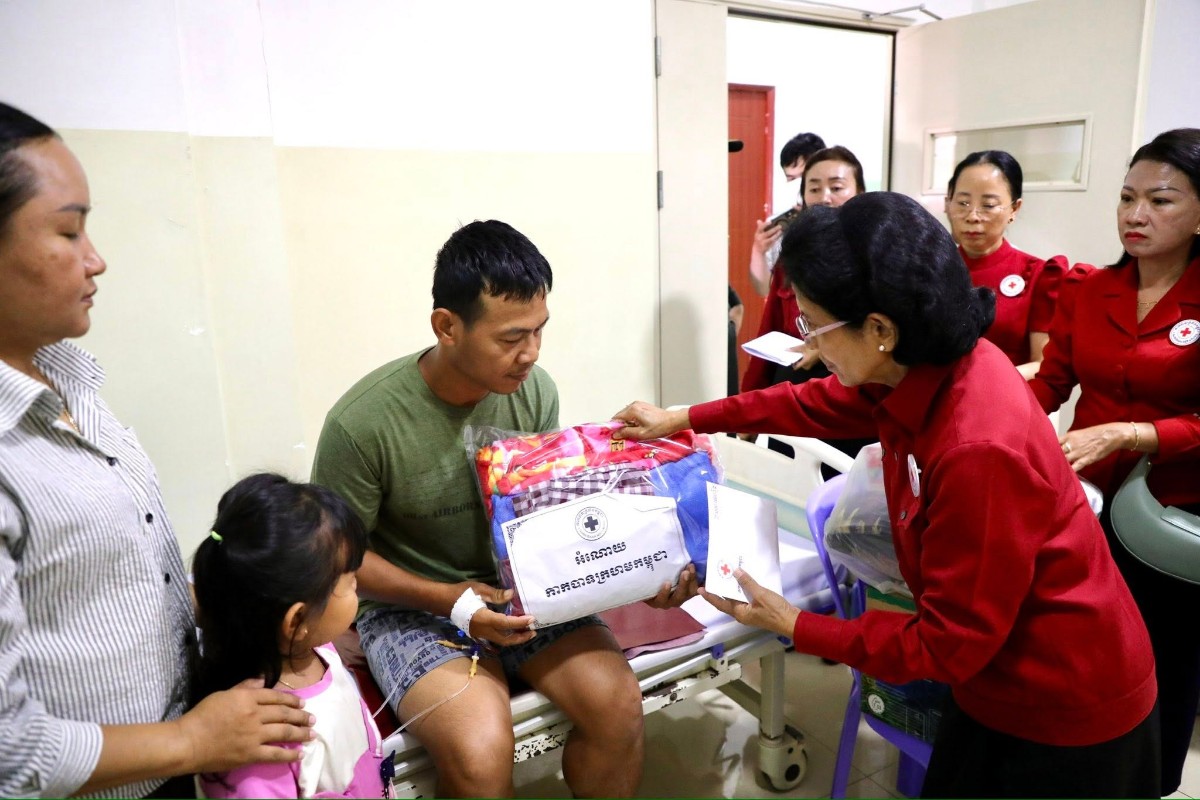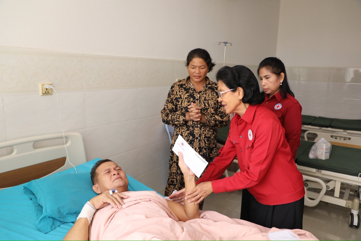 នៅថ្ងៃទី៧ ខែតុលា ឆ្នាំ២០២៥នេះ សម្តេចកិត្តិព្រឹទ្ធបណ្ឌិត ប៊ុន រ៉ានី ហ៊ុនសែន ប្រធានកាកបាទក្រហមកម្ពុជា បានចាត់ឱ្យលោកជំទាវ ពុំ ចន្ទីនី អគ្គលេខាធិការ កាកបាទក្រហមកម្ពុជា ចុះសួរសុខទុក្ខ និងនាំយកអំណោយមនុស្សធម៌ជាគ្រឿងឧបភោគបរិភោគ សម្ភារប្រើប្រាស់ និងថវិកាមួយចំនួន ផ្តល់ជូនយោធិនមួយចំនួនដែលកំពុងសម្រាកព្យាបាលជំងឺនៅមន្ទីរពេទ្យក្នុងរាជធានីភ្នំពេញ។