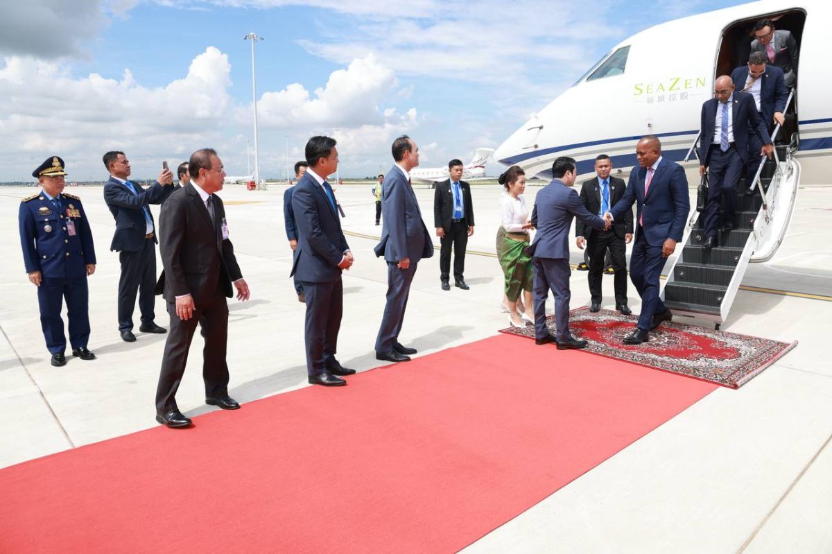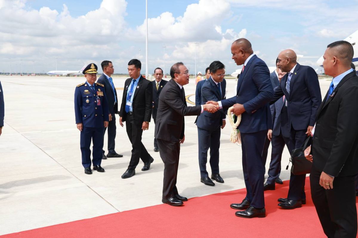 ឯកឧត្តមបណ្ឌិត Roosevelt Skerrit នាយករដ្ឋមន្ត្រីនៃកុំមិនដែលដូមីនីក បានដឹកនាំគណៈប្រតិភូជាន់ខ្ពស់មកដល់អាកាសយានដ្ឋានអន្តរជាតិតេជោ តាមជើងយន្តហោះពិសេស ប្រកបដោយសុវត្ថិភាពវេលាម៉ោង១០និង០០ នាព្រឹកថ្ងៃទី៨ ខែ តុលា ឆ្នាំ២០២៥ ដោយមានការទទួលស្វាគមន៍ពីសំណាក់ឯកឧត្តម សុខ សូកេន រដ្ឋមន្រ្តីក្រសួងអធិការកិច្ច និង ឯកឧត្តម ជុំ សុន្ទរី រដ្ឋលេខាធិការ ក្រសួងការបរទេស និង សហប្រតិបត្តិការអន្តរជាតិ ព្រមទាំងមន្រ្តីជាន់ខ្ពស់ជាច្រើនរូបទៀតផងដែរ។