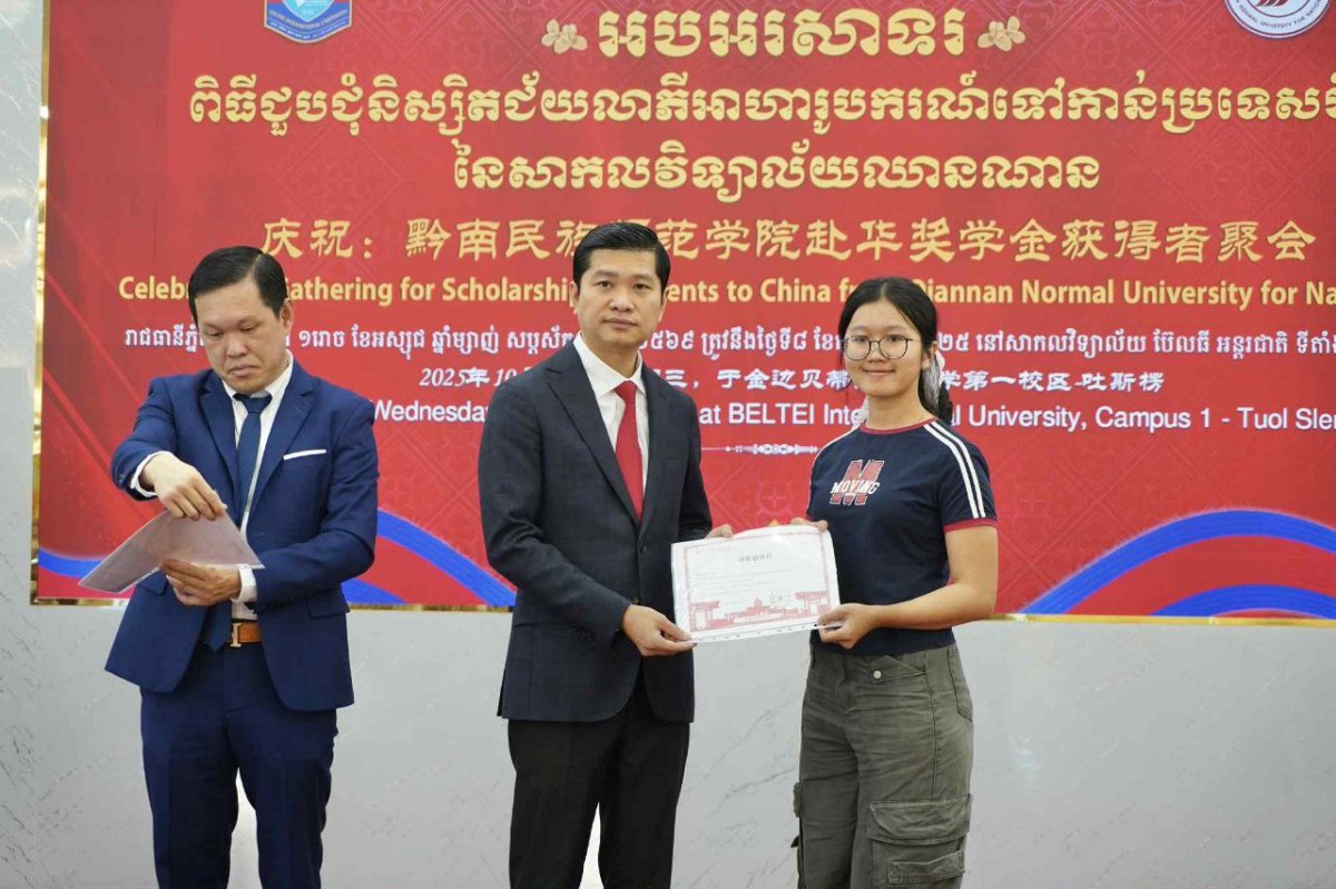 ឯកឧត្តម លី ណាវុឌ្ឍ សាកលវិទ្យាធិការសាកលវិទ្យាល័យប៊ែធីអន្តរជាតិ បានថ្លែងថា ក្នុងពេលបានអាហារូបករណ៍ទៅសិក្សានៅប្រទេសចិននេះ និស្សិតកម្ពុជាទាំងអស់ ត្រូវតែខិតខំសិក្សារៀនសូត្រក្រេបយកចំណេះដឹង មកចូលរួមអភិវឌ្ឍន៍ប្រទេសជាតិ ឲ្យកាន់តែរីកចម្រើន ជាមួយនេះ ក៏ត្រូវតែគោរពនូវច្បាប់របស់ប្រទេសគេ រស់នៅប្រកបដោយភាពសាមគ្គី ។ មួយ វិញទៀត មិនត្រូវមានការប្រកាន់បក្ខពួក បែងចែកវណ្ណៈ កុំធ្វើឲ្យបរទេសវាយតម្លៃយើង។