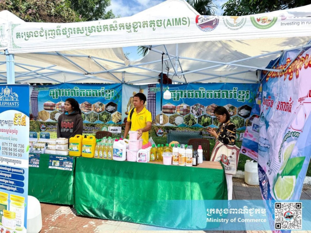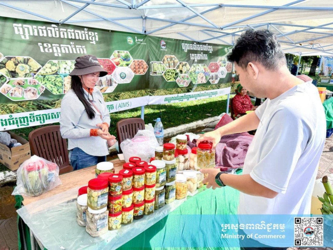 សូមបញ្ជាក់ថា ក្រោមការដឹកនាំ និងការគាំទ្ររបស់ក្រសួងពាណិជ្ជកម្ម និងការសម្របសម្រួលផ្តល់ទីតាំងរបស់រដ្ឋបាលខេត្ត មន្ទីរពាណិជ្ជកម្មខេត្តតាកែវ ក្រោមគម្រោងជំរុញទីផ្សារសម្រាប់កសិកម្មខ្នាតតូច (AIMS) នៃក្រសួងពាណិជ្ជកម្ម បានរៀបចំ និងដាក់ឲ្យដំណើរការផ្សារលក់ផលិតផលខ្មែរ ចាប់តាំងពីឆ្នាំ២០១៩ រហូតមកដល់បច្ចុប្បន្ន។