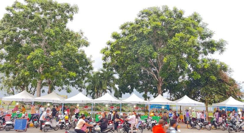តាកែវ៖ នៅថ្ងៃចុងសប្តាហ៍នេះ ទិដ្ឋភាពនៅបរិវេណសួនច្បារមាត់បឹងតាកែវ ទល់មុខមហោស្រពខេត្តតាកែវ កាន់តែមានភាពអ៊ូអរ ដោយមានបងប្អូនប្រជាពលរដ្ឋ និងភ្ញៀវទេសចរជាតិ-អន្តរជាតិជាច្រើន បានមកទស្សនា និងគាំទ្រយ៉ាងផុសផុលនូវ “ផ្សារផលិតផលខ្មែរ (ផ្សារចុងសប្តាហ៍)” ខេត្តតាកែវ ដែលបន្តបើកដំណើរការលក់កសិផល និងផលិតផលខ្មែរ។