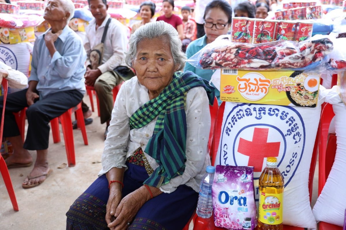 គ្រួសារនីមួយៗទទួលបាន ៖ អង្ករ ៣០គីឡូក្រាម, មី ១កេស, ត្រីខ ១០កំប៉ុង, ទឹកត្រី ៦ដប, ប្រេងឆា ១ដប, ម្សៅសាប៊ូ ១កញ្ចប់ និងឃីត (មុង ភួយ សារុង ក្រមា) ១កញ្ចប់។