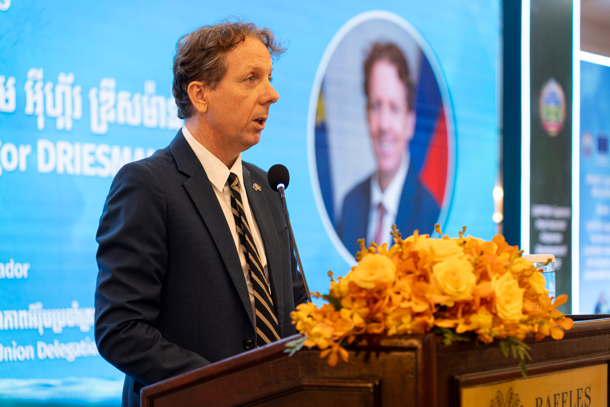 ពិធីប្រកាសបិទបញ្ចប់គម្រោង ធ្វើឡើងកាលពីរសៀលថ្ងៃទី១៣ ខែតុលា ឆ្នាំ២០២៥ ក្រោមអធិបតីភាពឯកឧត្តម ឌិត ទីណា រដ្ឋមន្ត្រីក្រសួងកសិកម្ម រុក្ខាប្រមាញ់ និងនេសាទ ឯកឧត្តម អ៊ីហ្គ័រ ឌ្រីសម៉ាន់ ឯកអគ្គរដ្ឋទូតប្រតិភូសហភាពអឺរ៉ុបប្រចាំនៅកម្ពុជា និងលោក ដេហ្សេណេ តេហ្សេរ៉ា នាយកការិយាល័យអភិវឌ្ឍន៍កសិ-ពាណិជ្ជកម្ម និងហេដ្ឋារចនាសម្ព័ន្ធ នៃអគ្គនាយកដ្ឋានគោលដៅអភិវឌ្ឍប្រកបដោយចីរភាព (SDG) នវានុវត្តន៍ និងការផ្លាស់ប្តូរសេដ្ឋកិច្ច នៃអង្គការ UNIDO ប្រចាំទីក្រុងវីយ៉េន ប្រទេសអូទ្រីស ក្រោមប្រធានបទ “បរិវត្តកម្មជលផល ដើម្បីកំណើនប្រកបដោយចីរភាព និងបរិយាប័ន្ន” ។