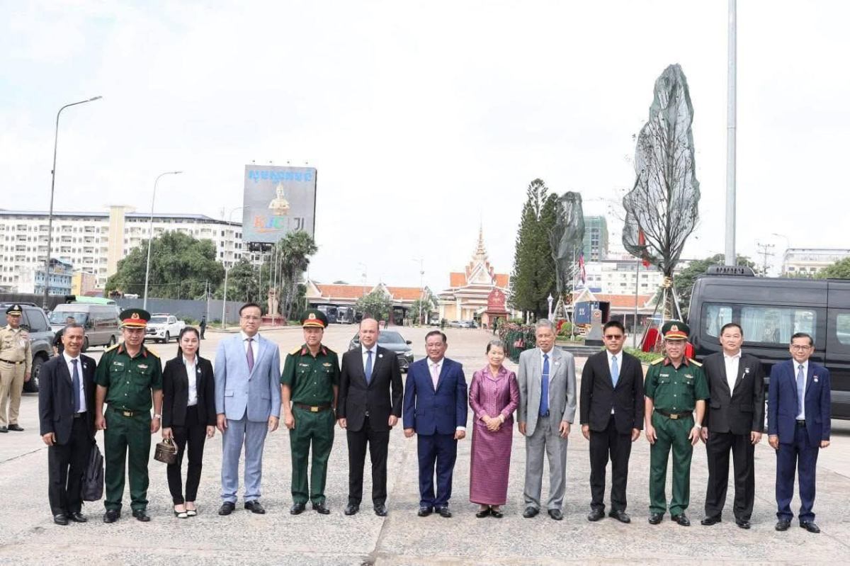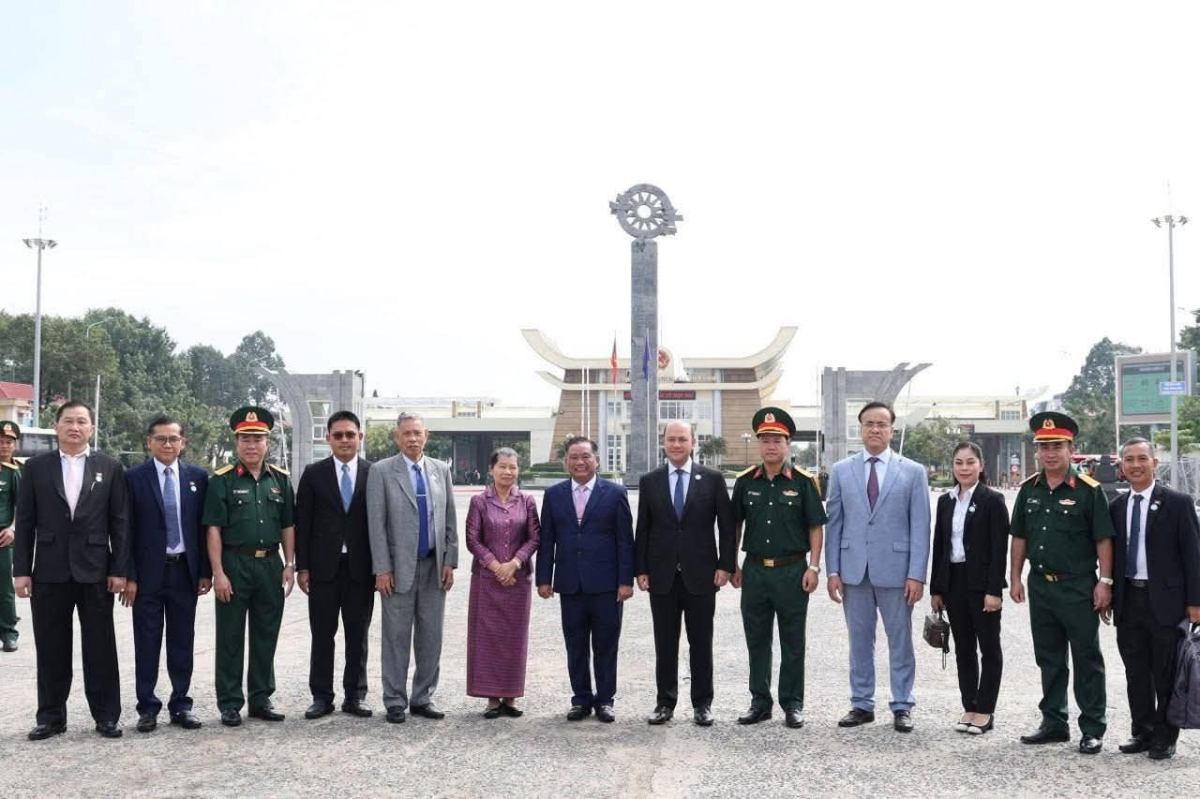 ព្រឹកថ្ងៃថ្ងៃទី១៤ ខែតុលា ឆ្នាំ២០២៥ សម្តេចកិត្តិសង្គហបណ្ឌិត ម៉ែន សំអន ប្រធានក្រុមប្រឹក្សាជាតិរណសិរ្សសាមគ្គី អភិវឌ្ឍន៍មាតុភូមិកម្ពុជា បានអញ្ជើញដឹកនាំគណៈប្រតិភូក្រុមប្រឹក្សាជាតិរណសិរ្សសាមគ្គី អភិវឌ្ឍន៍មាតុភូមិកម្ពុជា ចូលរួមកិច្ចប្រជុំលើកទី៨ ស្តីពី”ការអនុវត្តគម្រោងសាងសង់ ជួសជុល កែលំអ លើកសោភ័ណភាព ស្តូបមិត្តភាពកម្ពុជា-វៀតណាម នៅព្រះរាជាណាចក្រកម្ពុជា” នាទីក្រុងហូជីមិញ នៃសាធារណរដ្ឋសង្គមនិយមវៀតណាមចាប់ពីថ្ងៃទី១៤ ដល់១៦ ខែតុលា ឆ្នាំ២០២៥។ លោក វរសេនីយឯក ងៀន ទិនលីញ (Nguyễn Tấn Linh) មេបញ្ជាការរងយោធភូមិភាគីទី៧ បានអញ្ជើញទទួលស្វាគមន៍យ៉ាងកក់ក្ដៅដល់គណៈប្រតិភូរណសិរ្សសាមគ្គី អភិវឌ្ឍន៍មាតុភូមិកម្ពុជា នៅច្រកទ្វារអន្តរជាតិបាវិត ខេត្តស្វាយរៀង។