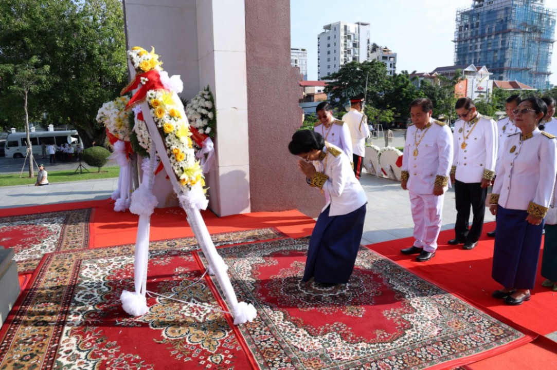 កាកបាទក្រហមកម្ពុជា ដែលមាន សម្តេចព្រះមហាក្សត្រី នរោត្ដម មុនិនាថ សីហនុ ព្រះវររាជមាតាជាតិខ្មែរ គង់ប្រថាប់ជាព្រះប្រធានកិត្តិយស និងសម្ដេចកិត្តិព្រឹទ្ធបណ្ឌិត ប៊ុន រ៉ានី ហ៊ុនសែន ជាប្រធាន ព្រមទាំងប្រជានុរាស្ត្រទូទាំងប្រទេស សូមសម្តែងនូវការគោរពដឹងគុណដ៏ខ្ពង់ខ្ពស់បំផុតថ្វាយចំពោះ ព្រះបរមរតនកោដ្ឋ ដែលព្រះអង្គបានលះបង់និងបូជាព្រះកាយពលដ៏ធំធេងបំផុតចំពោះជាតិមាតុភូមិកម្ពុជា ហើយទូលបង្គំយើងខ្ញុំជាកូនចៅ ចៅទួត ចៅលួត នៅតែចងចាំជានិច្ចរាល់ ស្នាព្រះហស្ថ ព្រះរាជបូជនីយកិច្ច និងគុណូបក្ការៈដ៏ធំធេង ខ្ពង់ខ្ពស់បំផុត នៃអង្គសម្តេចឪ សម្តេចតា សម្តេចតាទួត ដែល ទ្រង់បានលះបង់ព្រះកាយពល ព្រះបញ្ញាញាណ ដើម្បីឯករាជ្យជាតិ អធិបតេយ្យ និងបូរណភាពដែនដី។