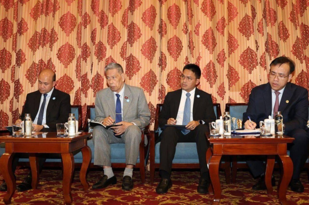 សម្ដេចកិត្តិសង្គហបណ្ឌិត ម៉ែន សំអន ប្រធានក្រុមប្រឹក្សាជាតិរណសិរ្សសាមគ្គីអភិវឌ្ឍន៍មាតុភូមិកម្ពុជា ទទួលជួប គណៈប្រតិភូគណៈកម្មាធិការមជ្ឈិមរណសិរ្សមាតុភូមិវៀតណាម ដែលដឹកនាំដោយ ឯកឧត្តម ង្វៀន កុងធូយ Nguyen Cong Thuy អនុប្រធានគណៈកម្មាធិការមជ្ឈិមរណសិរ្សមាតុភូមិវៀតណាម នៅសណ្ឋាគារ Tan Son Nhat ប្រទេសវៀតណាម នារសៀល ថ្ងៃអង្គារ ៧រោច ខែអស្សុជ ឆ្នាំម្សាញ់ សប្តស័ក ព.ស. ២៥៦៩ ត្រូវនឹង ថ្ងៃទី១៤ ខែតុលា ឆ្នាំ២០២៥។