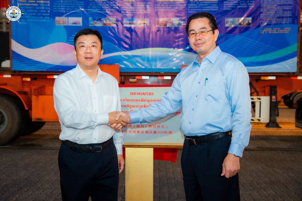 កំពង់ផែស្វយ័តក្រុងព្រះសីហនុ និងកំពង់ផែជាំងអ៊ីន របស់ចិន សម្រេចបានកុងតឺន័រឆ្លងកាត់ ៥០០ ធីអ៊ីយូ