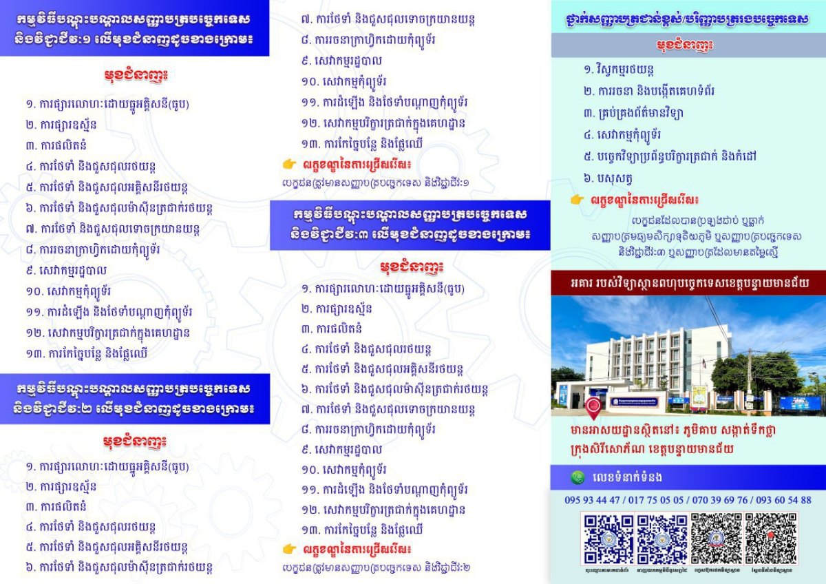 វិទ្យាស្ថានពហុបច្ចេកទេសខេត្តបន្ទាយមានជ័យ ផ្តល់អាហារូបករណ៍ ២៣០០កន្លែង លើ ១៣មុខជំនាញ និងប្រាក់ឧបត្ថម្ភ ដល់យុវជនមកពីគ្រួសារក្រីក្រ និងគ្រួសារងាយរងហានិភ័យ