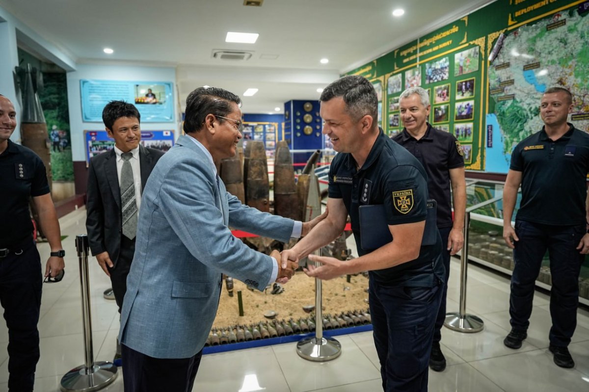 ភ្នំពេញ៖ នៅព្រឹកថ្ងៃទី១៧ ខែតុលា ឆ្នាំ២០២៥ នៅទីបញ្ជាការស៊ីម៉ាក់ភ្នំពេញ ឯកឧត្តម ហេង រតនា ប្រតិភូរាជរដ្ឋាភិបាលទទួលបន្ទុកជាអគ្គនាយកមជ្ឈមណ្ឌលសកម្មភាពកំចាត់មីនកម្ពុជា បានទទួលស្វាគមន៍ដំណើរទស្សនកិច្ចរបស់ថ្នាក់ដឹកនាំនៃអង្គភាពផ្តល់សេវាកម្មរដ្ឋក្នុងគ្រាអាសន្នសម្រាប់ប្រទេសអ៊ុយក្រែន (SESU) ដឹកនាំដោយលោក Reva Serhii ប្រធាននាយកដ្ឋានសកម្មភាពមីន SESU។