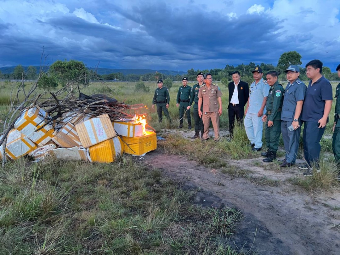 សាច់បង្កក ដូចជា ជង្គង់មាន់ ស្លាបមាន់ ក្ដាម ជិត ១តោន ទើបត្រូវបានដុតកម្ទេចចោលមុននេះ ដោយកាលពីម៉ោង ៣ ទាបភ្លឺ នៅថ្ងៃទី១៧ ខែតុលា ឆ្នាំ២០២៥ កម្លាំងនរគបាលប៉ុស្ត ការពារ ព្រែកកោះយ៉ នៃវរ:នគបាលការពារព្រំដែនជើងទឹកលេខ២៦៩ ខេត្តកោះកុង បានឃាត់ទូកដឹកសាច់បង្កកពីថៃ តាមផ្លូវទឹកចូលខេត្តកោះកុង រឹបអូសបានសាច់បង្កកជាច្រើនប្រភេទ ព្រមទាំងឃាត់ខ្លួនមនុស្សបាន ៣នាក់។