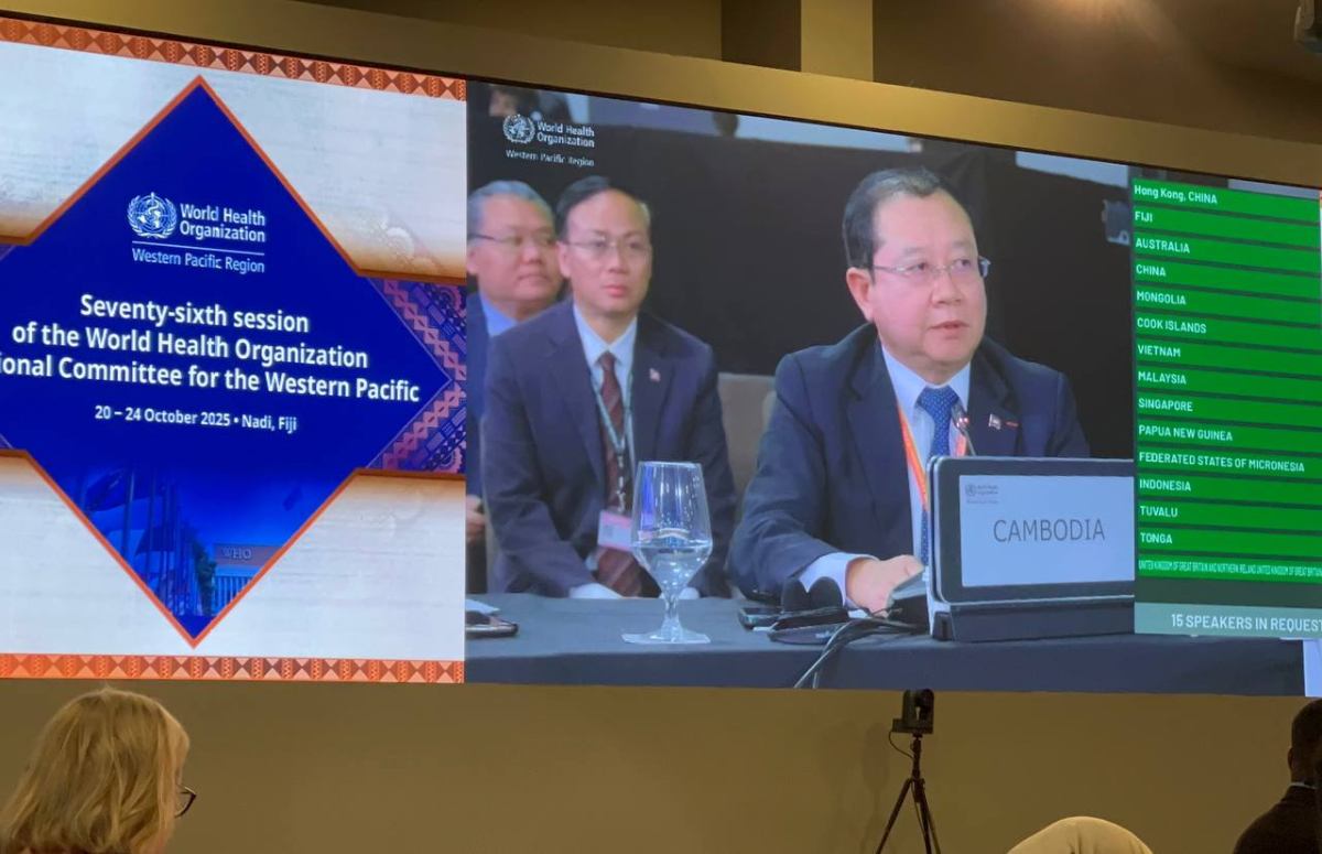 ភ្នំពេញ ៖ នាថ្ងៃទី២០ ខែតុលា ឆ្នាំ២០២៥ ក្នុងនាមក្រសួងសុខាភិបាល នៃព្រះរាជាណាចក្រកម្ពុជា ឯកឧត្តមសាស្ត្រាចារ្យ ឈាង រ៉ា រដ្ឋមន្ត្រីក្រសួងសុខាភិបាល បានអញ្ជើញធ្វើបទអន្តរាគមន៍ ក្នុងសម័យកិច្ចប្រជុំពេញអង្គ នៃកិច្ចប្រជុំលើកទី៧៦ របស់អង្គការសុខភាពពិភពលោកប្រចាំតំន់ប៉ាស៊ីហ្វិកខាងលិច។