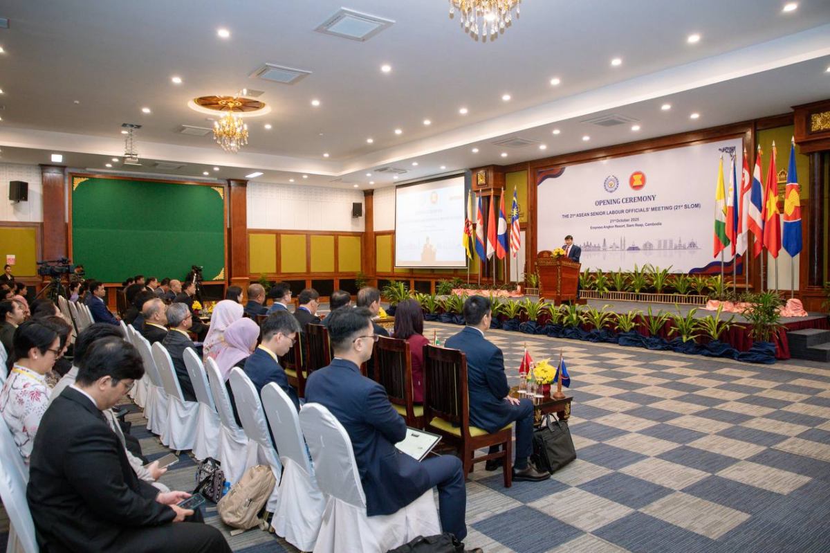 សៀមរាប៖ ឯកឧត្តម ហេង សួរ រដ្ឋមន្ត្រីក្រសួងការងារ និងបណ្ដុះបណ្ដាលវិជ្ជាជីវៈ បានអញ្ជើញជាអធិបតីក្នុងពិធីបើកកិច្ចប្រជុំឧត្តមមន្ត្រីការងារអាស៊ាន លើកទី២១ (21st SLOM) ដែលបានប្រព្រឹត្តទៅនៅថ្ងៃទី២១ ខែតុលា ឆ្នាំ២០២៥ នៅខេត្តសៀមរាប។ នេះជាលើកទីពីរហើយ ដែលកម្ពុជាមានកិត្តិយស បានទទួលរៀបចំកិច្ចប្រជុំឧត្តមមន្រ្តីការងារអាស៊ានម្តងទៀត ដែលធ្លាប់ធ្វើជាម្ចាស់ផ្ទះកាលពីឆ្នាំ២០១២ នៅរាជធានីភ្នំពេញ ដើម្បីបញ្ជាក់ឡើងវិញនូវគោលបំណងរួមគ្នា ក្នុងការពង្រឹងកម្លាំងពលកម្មរបស់អាស៊ាន ប្រកបដោយបរិយាបន្ន ចីរភាព ភាពធន់ និងបានត្រៀមខ្លួនរួចរាល់សម្រាប់ពេលអនាគត។