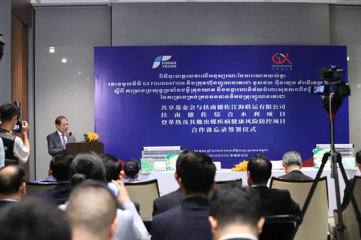 ភ្នំពេញ៖ ក្រុមហ៊ុនហ្វូណនតេជោ ខូសថល-អ៊ីន ឡេន វ័រធើវេយ ឯ.ក (Funan Techo Coastal-Inland Waterways Co., Ltd.,) នៅព្រឹកថ្ងៃទី២១ ខែតុលានេះ បានចុះហត្ថលេខាលើអនុស្សរណៈនៃការយោគយល់គ្នាជាមួយមូលនិធិ GX FOUNDATION ដើម្បីប្រយុទ្ធប្រឆាំងជម្ងឺគ្រុនឈាម និងបង្ការហានិភ័យចំពោះសុខភាពពីជម្ងឺផ្សេងៗនៃគម្រោងគ្រប់គ្រងធនធានទឹកចម្រុះហ្វូណនតេជោ។