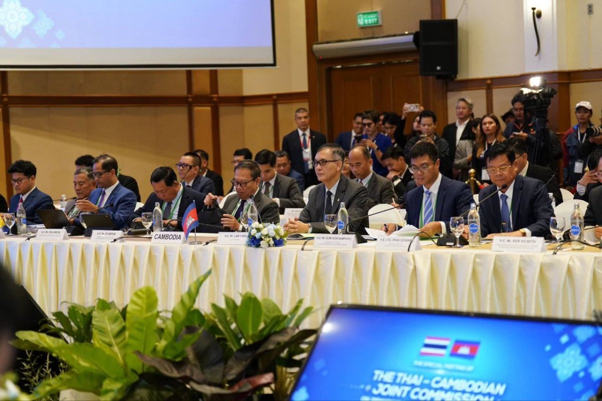 កិច្ចប្រជុំគណៈកម្មាធិការចម្រុះខណ្ឌសីមា ព្រំដែនគោកកម្ពុជាថៃ (JBC) ដែលបានរៀបចំឡើង នៅថ្ងៃទី ២១ ខែតុលា ឆ្នាំ២០២៥ នៅខេត្តចន្ទបុរី ប្រទេសថៃ ប្រព្រឹត្តិទៅជាផ្លូវការនៅម៉ោង ១២ និង ១២នាទីថ្ងៃត្រង់ រហូតដល់ម៉ោង ៦ល្ងាច ស្ថិតក្រោមបរិយាកាសរលូន ស្និទស្នាល ដោយភាគីទាំងពីរកម្ពុជា ថៃ បន្តពិភាក្សា លើរបៀបវារៈចំនួន៣សំខាន់ៗ។