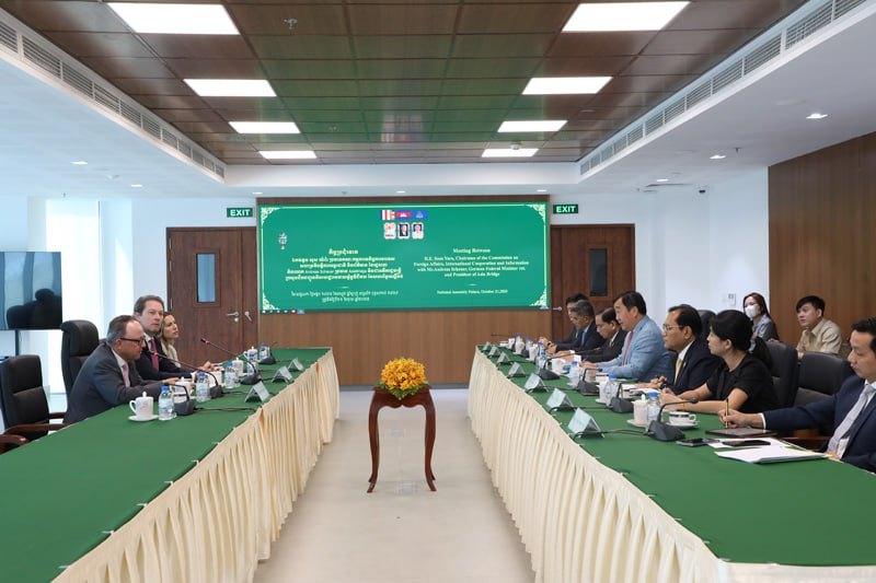 ឯកឧត្តម សួស យ៉ារ៉ា ប្រធានគណ:កម្មការកិច្ចការបរទេស សហប្រតិបត្តិការអន្តរជាតិ និងព័ត៌មាន នៃរដ្ឋសភា នារសៀលថ្ងៃទី២១ ខែតុលា ឆ្នាំ២០២៥ នៅវិមានរដ្ឋសភា បានទទួលជួបពិភាក្សាការងារជាមួយឯកឧត្តម Andreas Scheuer ប្រធាន AsiaBridge និងជាអតីតរដ្ឋមន្ត្រីក្រសួងដឹកជញ្ជូននិងហេដ្ឋារចនាសម្ព័ន្ធឌីជីថល នៃសហព័ន្ធអាល្លឺម៉ង់។