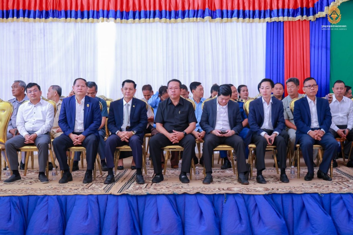 នាព្រឹកថ្ងៃទី២៣ ខែតុលា ឆ្នាំ២០២៥ ឯកឧត្ដម ហ៊ុន ម៉ានី ឧបនាយករដ្ឋមន្ត្រី រដ្ឋមន្ត្រីក្រសួងមុខងារសាធារណៈ និងជាប្រធានក្រុមការងាររាជរដ្ឋាភិបាលចុះមូលដ្ឋានខេត្តកំពង់ស្ពឺ បានអញ្ជើញជាអធិបតីក្នុងពិធីបំពាក់គ្រឿងឥស្សរិយយសការងារជូនបុគ្គលិកអប់រំ លោកគ្រូ អ្នកគ្រូ នៃខេត្តកំពង់ស្ពឺចំនួន ១៣១៤នាក់ នៅក្នុងបរិវេណសាលាខេត្តកំពង់ស្ពឺ។