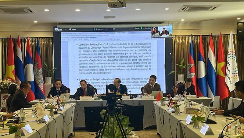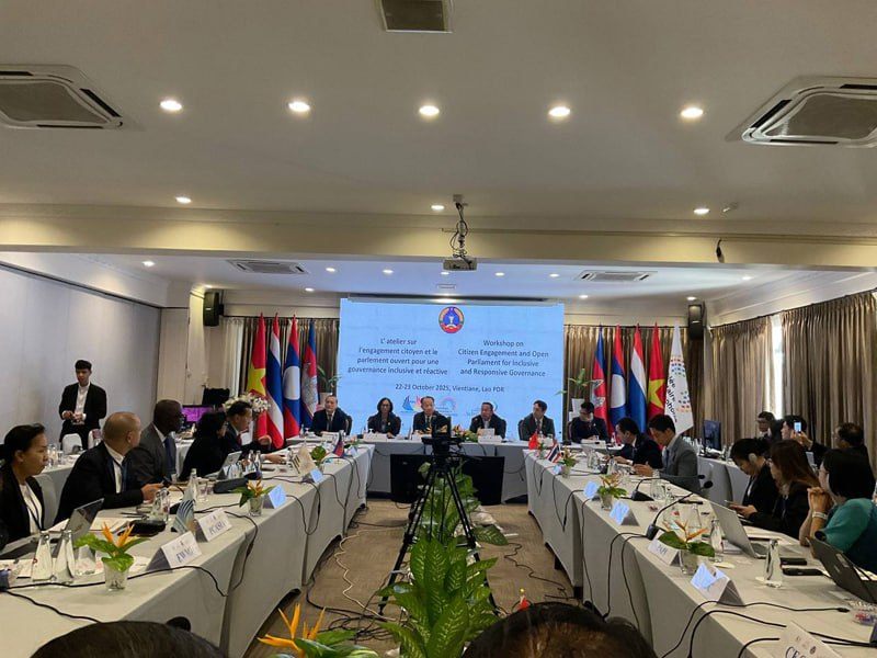 គណៈប្រតិភូសភាកម្ពុជានិយាយភាសាបារាំងចែករំលែកបទពិសោធន៍ និងការអនុវត្តរបស់រដ្ឋសភាកម្ពុជាក្នុងសិក្ខាសាលា នៅប្រទេសឡាវ