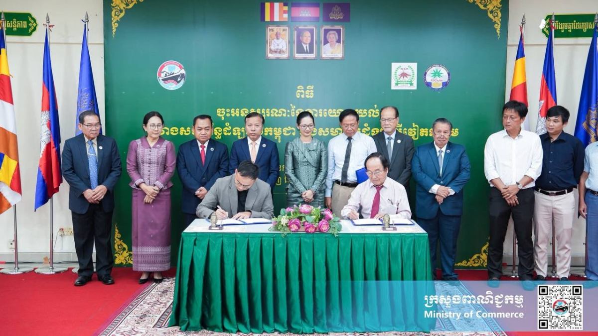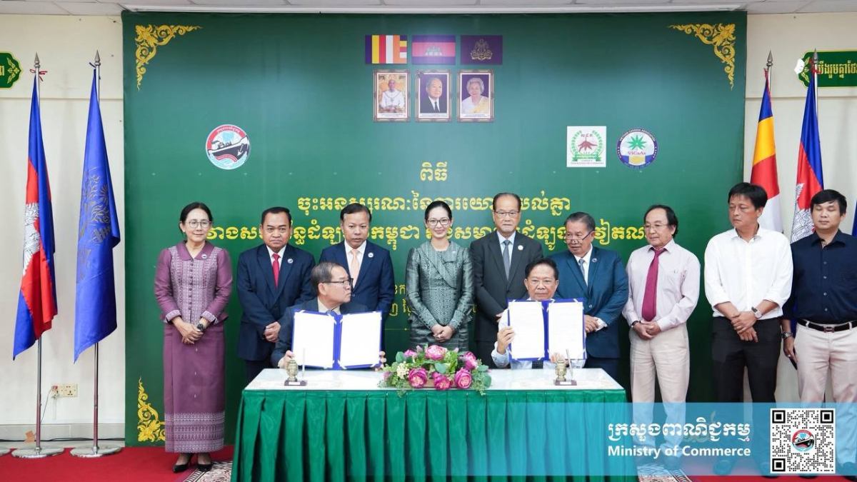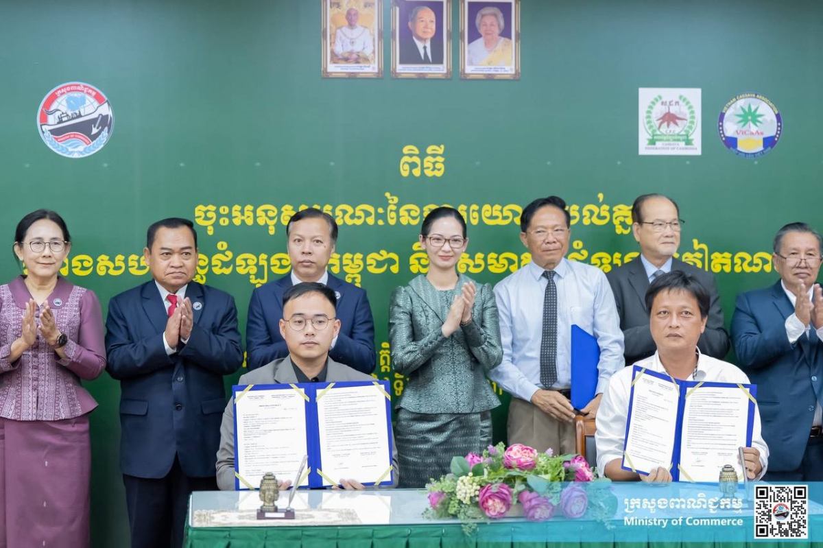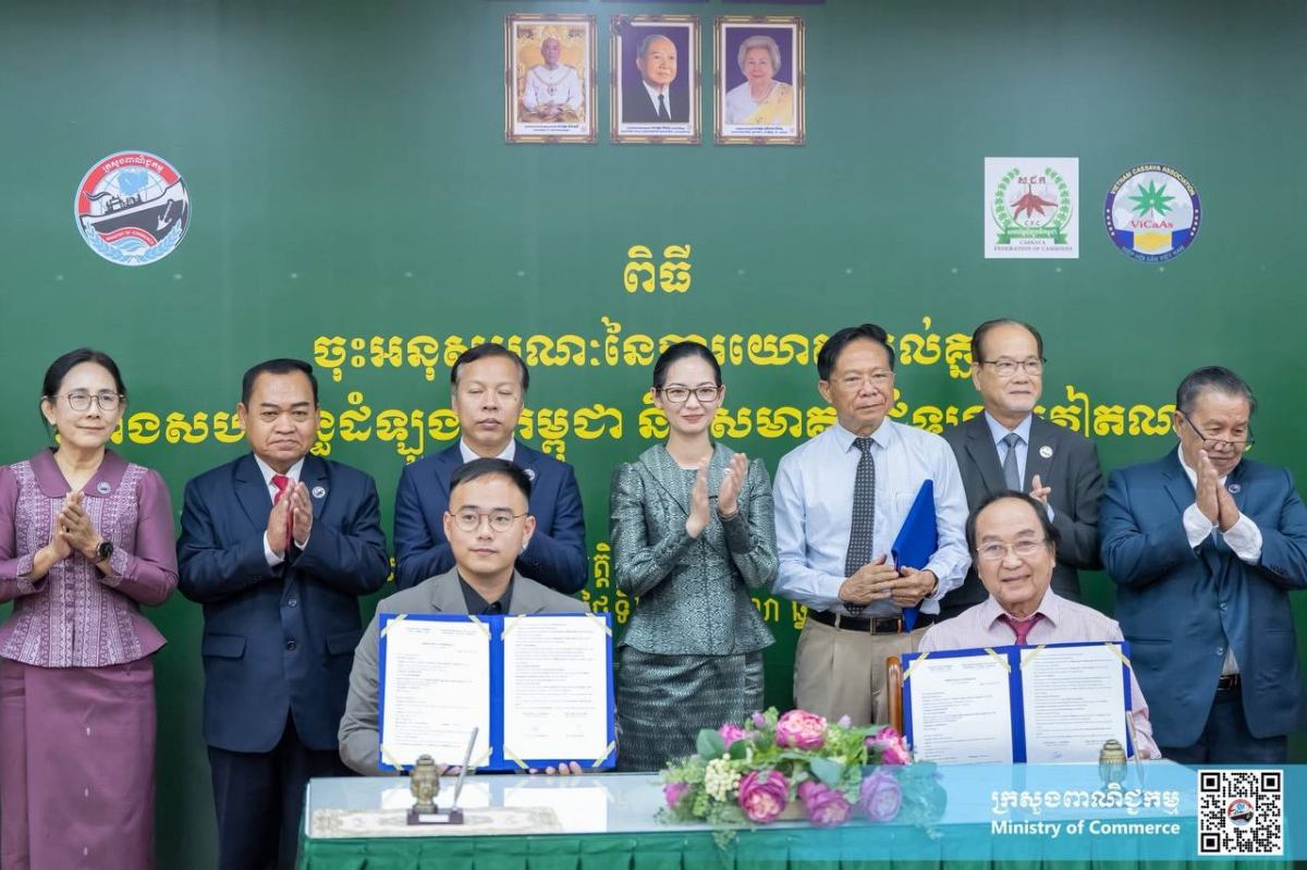 ភ្នំពេញ៖នៅរសៀលថ្ងៃព្រហស្បតិ៍ ទី២៣ ខែតុលា ឆ្នាំ២០២៥ នៅទីស្ដីការក្រសួងពាណិជ្ជកម្ម លោកជំទាវ ចម និម្មល រដ្ឋមន្ត្រីក្រសួងពាណិជ្ជកម្ម អញ្ជើញជាអធិបតីដ៏ខ្ពង់ខ្ពស់ ក្នុងពិធីចុះអនុស្សរណៈនៃការយោគយល់គ្នារវាងសហព័ន្ធដំឡូងមីកម្ពុជា និងសមាគមដំឡូងមីវៀតណាម ដោយមានការអញ្ជើញចូលរួមពីឯកឧត្តម លោកជំទាវថ្នាកដឹកនាំក្រសួងពាណិជ្ជកម្ម តំណាងស្ថានទូតវៀតណាមនៅកម្ពុជា