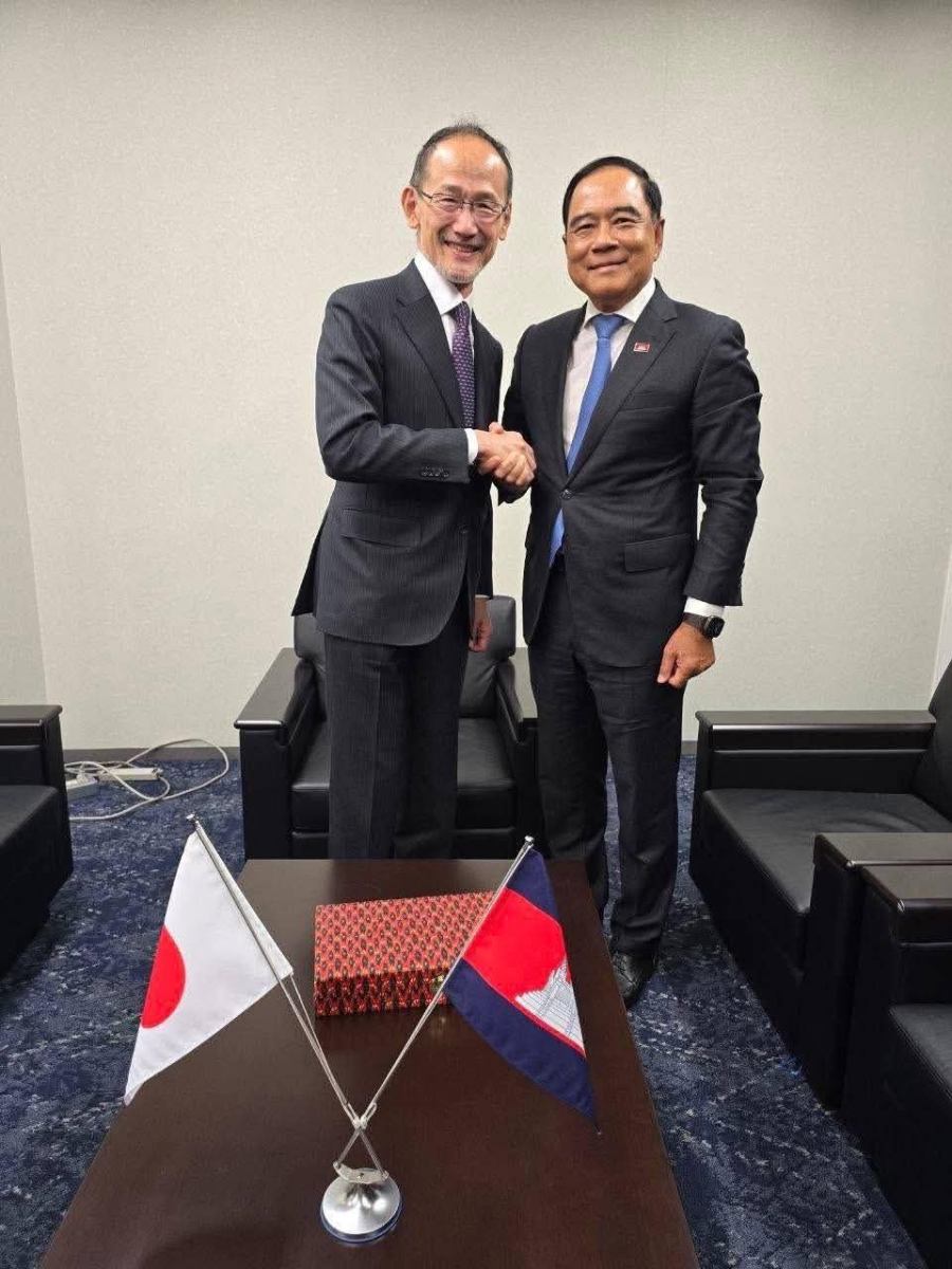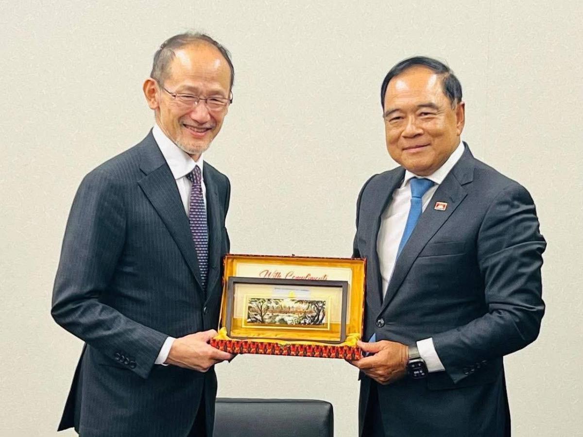 (តូក្យូ ជប៉ុន)៖ ថ្ងៃទី២៣ ខែតុលា ឆ្នាំ២០២៥ ឯកឧត្តមបណ្ឌិត លី ធុជ ទេសរដ្ឋមន្ត្រី អនុប្រធានទី១អាជ្ញាធរមីន បានចូលជួបសម្តែងការគួរសម និងពិភាក្សាការងារជាមួយ ឯកឧត្តម SUZUKI Hideo ឯកអគ្គរាជទូតជប៉ុន សម្រាប់កិច្ចសហប្រតិបត្តិការមេគង្គជប៉ុន នៅអគារក្រសួងការបរទេសជប៉ុន។