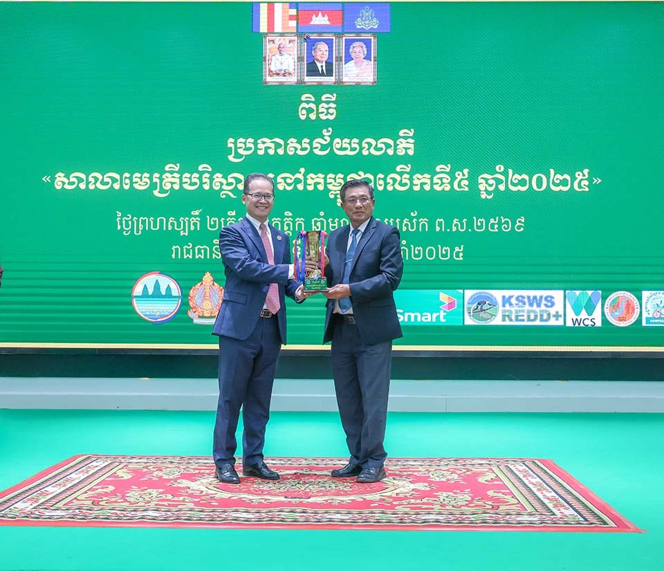 នៅរសៀលថ្ងៃទី ទី២៣ ខែតុលា ឆ្នាំ២០២៥៖ ក្រសួងបរិស្ថានបានរៀបចំពិធីប្រកាសជ័យលាភី «សាលាមេត្រីបរិស្ថានលើកទី៥ ឆ្នាំ២០២៥» នៅទីស្តីការក្រសួង ក្រោមអធិបតីភាពដ៏ខ្ពង់ខ្ពស់របស់ ឯកឧត្តមបណ្ឌិត អ៊ាង សុផល្លែត រដ្ឋមន្ត្រីក្រសួងបរិស្ថាន។ ពិធីនេះត្រូវបានរៀបចំឡើងដើម្បីលើកទឹកចិត្ត និងការទទួលស្គាល់កិច្ចខិតខំប្រឹងប្រែងរបស់សាលារៀនក្នុងការអនុវត្តគោលការណ៍ណែនាំស្តីពីសាលាមេត្រីបរិស្ថាននៅកម្ពុជា។