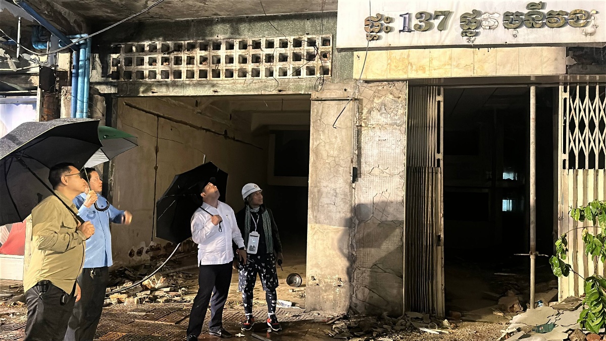 លោកអភិបាលខណ្ឌ៧មករា បន្តដឹកនាំមន្រ្តីជំនាញត្រួតពិនិត្យការដ្ឋានវាយរំលំ អគារអតីត សណ្ឋាគារអង្គរមានជ័យ