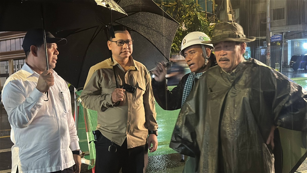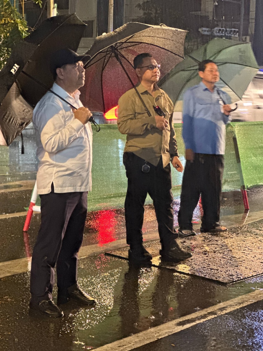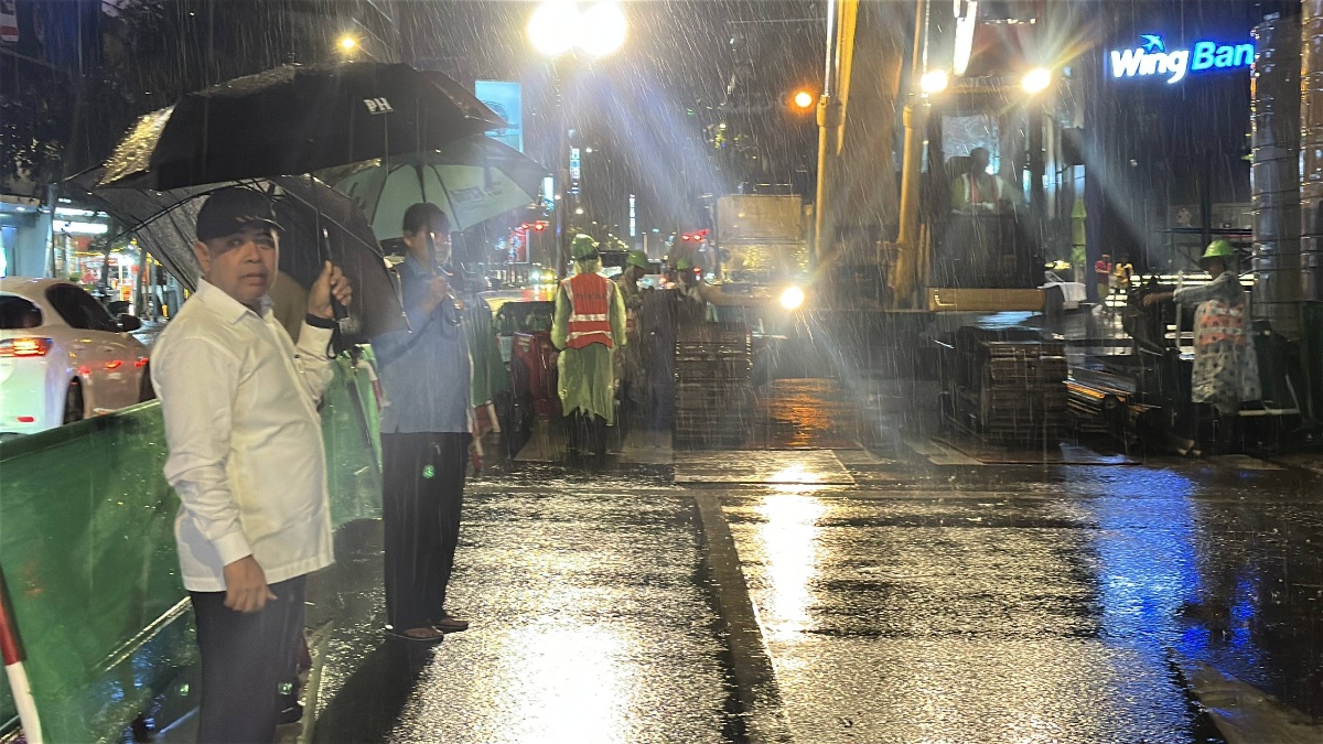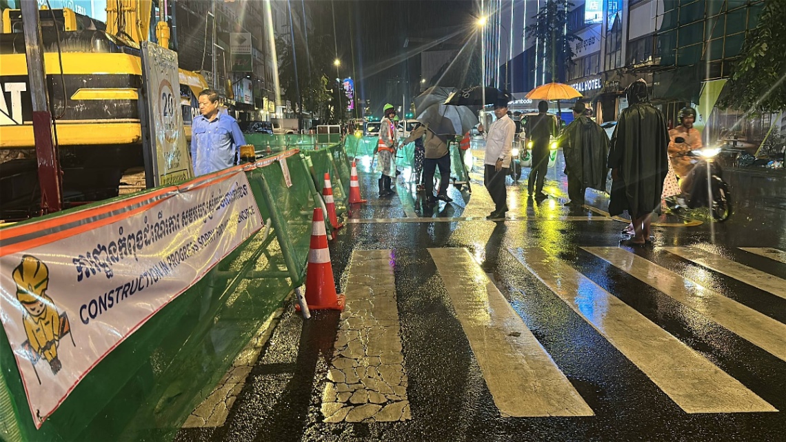 ភ្នំពេញ៖ នាយប់ថ្ងៃទី២៤ ខែតុលា ឆ្នាំ២០២៥ ខណៈមេឃកំពុងធ្លាក់ភ្លៀង លោក ថេង សុថុល អភិបាលនៃគណៈអភិបាលខណ្ឌ៧មករា បានដឹកនាំក្រុមការងារ ជាមួយ មន្រ្តីជំនាញក្រសួង រៀបចំដែនដី នគរូបនីយកម្ម និងសំណង់ ដើម្បីបន្តត្រួតពិនិត្យមើលទីតាំងការដ្ឋាន ដំណើរការគ្រឿងចក្រវាយរំលំ ដើម្បីធានាបានសុខសុវត្ថិភាព បញ្ជៀសចរាចរណ៍ដល់បងប្អូនអ្នកធ្វើដំណើរនៅពេលរាត្រី ដែលមានទីតាំងស្ថិតនៅលើមហាវិថីព្រះ មុនីវង្ស(ផ្លូវ៩៣) កែងមហាវិថីកម្ពុជាក្រោម(ផ្លូវ១២៨) ក្នុងភូមិ១ សង្កាត់ មនោរម្យ ខណ្ឌ ៧មករា រាជធានីភ្នំពេញ ។