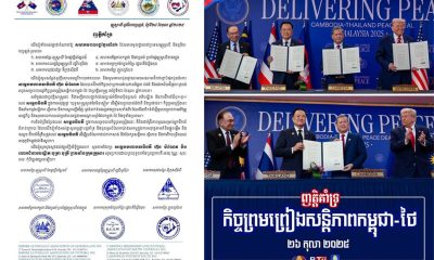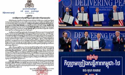 ព័ត៌មាន1 week agoកិច្ចព្រមព្រៀងសន្តិភាពកម្ពុជា-ថៃ នឹងត្រូវចុះហត្ថលេខានៅចុងខែនេះ ដោយមានប្រធានាធិបតីអាម៉េរិកជាសាក្សី