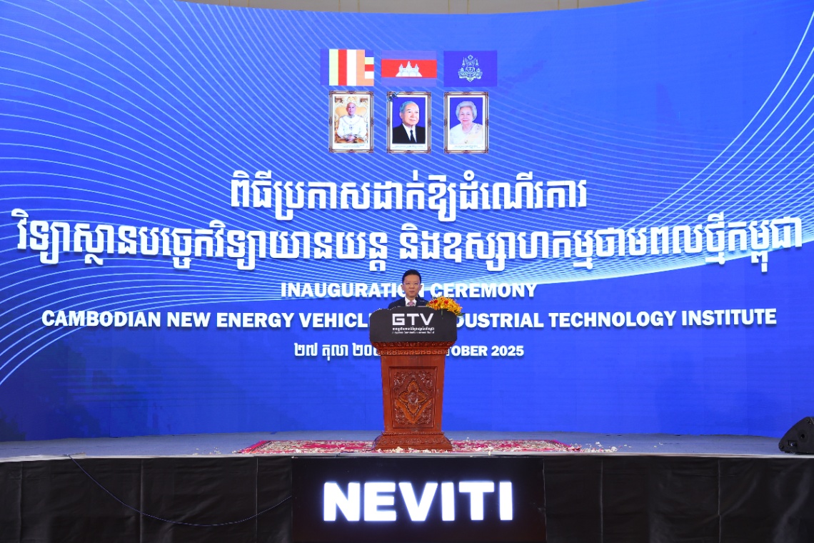 ភ្នំពេញ៖ ឯកឧត្តម ហែម វណ្ឌឌី រដ្ឋមន្រ្តីក្រសួងឧស្សាហកម្ម វិទ្យាសាស្រ្ត បច្ចេកវិទ្យា និងនវានុវត្តន៍ នៅថ្ងៃទី២៧ ខែតុលា ឆ្នាំ២០២៥ អញ្ជើញសម្ពោធដាក់ឲ្យដំណើរការវិទ្យាស្ថានបច្ចេកវិទ្យាយានយន្ត និងឧស្សាហកម្មថាមពលថ្មីនៅកម្ពុជា ។