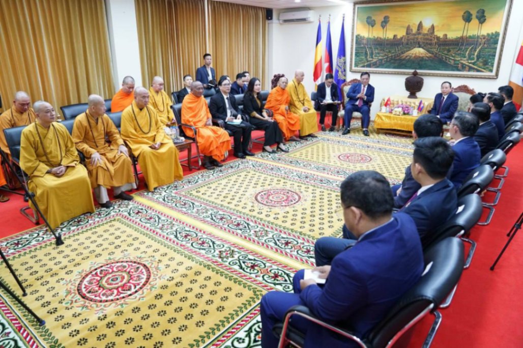 ភ្នំពេញ ៖ ឯកឧត្តម ចាយ បូរិន រដ្ឋមន្រ្តីក្រសួងធម្មការនិងសាសនា អញ្ជើញទទួលជួបស្វាគមន៍ជាមួយ ឯកឧត្តមបណ្ឌិត ងៀន ហាយជុង (H.E. Dr. Nguyen Hai Trung) អនុរដ្ឋមន្ត្រីក្រសួងកិច្ចការ ជនជាតិ និងសាសនា នៃសាធារណរដ្ឋសង្គមនិយមវៀតណាម និងព្រះតេជគុណ ធិច ហ្វិថុង (Most Venerable Thich Hue Thong) ព្រះអនុប្រធានក្រុមប្រឹក្សាប្រតិបត្តិ និងជាព្រះប្រធានគណៈកម្មាធិការមជ្ឈិមកិច្ចការនីតិកម្ម នៃព្រះពុទ្ធសាសនាវៀតណាម ព្រមទាំង គណៈប្រតិភូ ព្រះមន្រ្តីសង្ឃវៀតណាម ក្នុងឱកាសអញ្ជើញចូលរួម កិច្ចប្រជុំកំពូលព្រះពុទ្ធសាសនា កម្ពុជា ឡាវ វៀតណាម លើកទី៣ ក្រោមប្រធានបទ “សុខដុមនីយកម្មព្រះពុទ្ធសាសនាដើម្បីសន្តិភាពនិងការអភិវឌ្ឍប្រកបដោយចីរភាព” ដែលកម្ពុជាធ្វើជាម្ចាស់ផ្ទះប្រារព្ធធ្វើឡើងនៅរាជធានីភ្នំពេញ នៃព្រះរាជាណាចក្រកម្ពុជា ចាប់ពីថ្ងៃទី២៧ ដល់ថ្ងៃទី២៩ ខែតុលា ឆ្នាំ២០២៥ នារសៀលថ្ងៃទី២៧ ខែតុលា ឆ្នាំ២០២៥ នាទីស្តីការក្រសួងធម្មការនិងសាសនា។