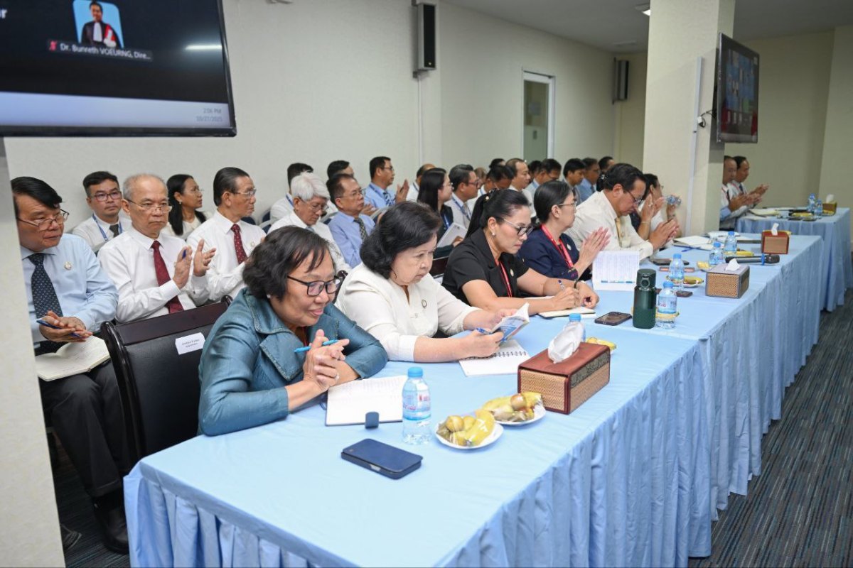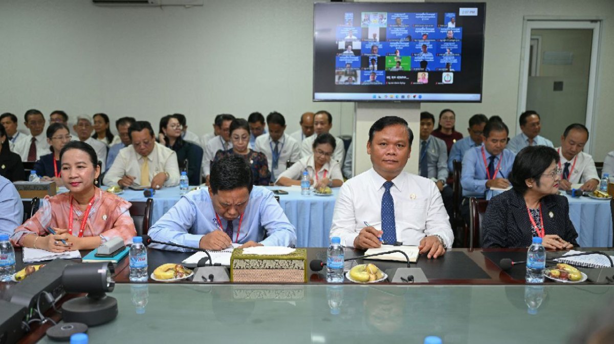 នាទីស្ដីការក្រសួងសុខាភិបាល ឯកឧត្តមសាស្ត្រាចារ្យ ឈាង រ៉ា រដ្ឋមន្ត្រីក្រសួងសុខាភិបាល នៅថ្ងៃទី២៧ ខែតុលា ឆ្នាំ២០២៥ បានដឹកនាំកិច្ចប្រជុំកម្រិតថ្នាក់ដឹកនាំលើកទី២ នៃខែតុលា ដើម្បីពិនិត្យវឌ្ឍនភាពការងារ និងលើកទិសដៅការងារបន្ត ដែលមានការអញ្ជើញចូលរួមពី ឯកឧត្តម លោកជំទាវ រដ្ឋលេខាធិការ អនុរដ្ឋលេខាធិការ ទីប្រឹក្សាក្រសួង អគ្គនាយក អគ្គនាយករង និងគ្រប់ប្រធានអង្គភាពថ្នាក់កណ្តាលក្រោមឱវាទក្រសួងសុខាភិបាល ប្រធានមន្ទីរសុខាភិបាលរាជធានីភ្នំពេញ និងតាមប្រព័ន្ធ Zoom ប្រធានមន្ទីរសុខាភិបាលខេត្ត។