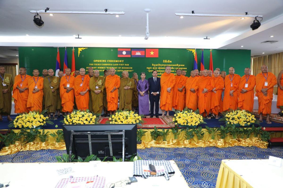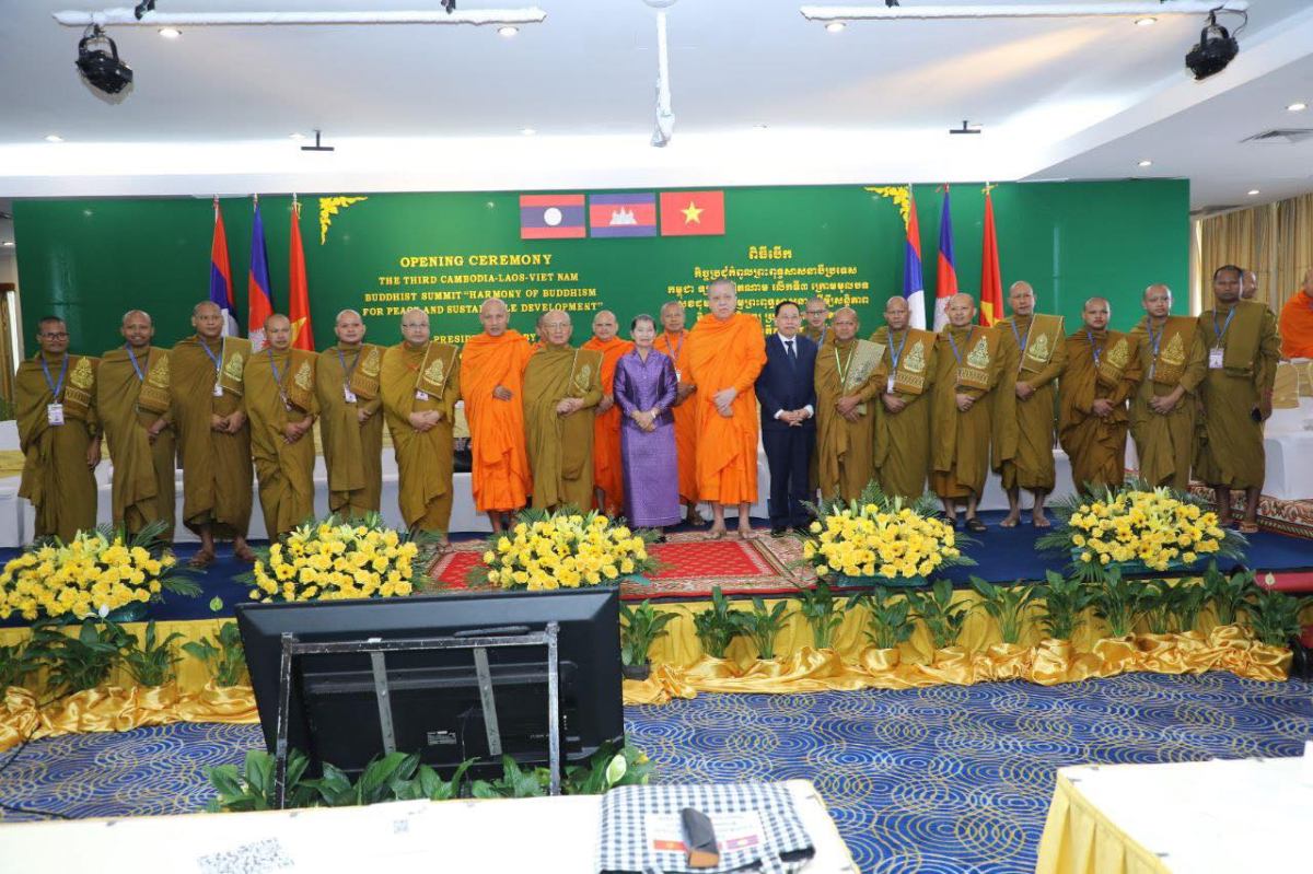 សម្តេចសម្តេចកិត្តិសង្គហបណ្ឌិត ម៉ែន សំអន ឧត្តមប្រឹក្សាផ្ទាល់ព្រះមហាក្សត្រ បានអញ្ជើញជាអធិបតីក្នុងពិធីបើកកិច្ចប្រជុំកំពូលព្រះពុទ្ធសាសនា កម្ពុជា ឡាវ វៀតណាម លើកទី៣ ក្រោមប្រធានបទ “សុខដុមនីយកម្មព្រះពុទ្ធសាសនា ដើម្បីសន្តិភាព និងការអភិវឌ្ឍប្រកបដោយចីរភាព” ដែលបានរៀបចំឡើងនៅ សណ្ឋាគារកាំបូឌីយ៉ាណា នាព្រឹកថ្ងៃអង្គារ ៧កើត ខែកត្ដិក ឆ្នាំម្សាញ់ សប្ដស័ក ព.ស.២៥៦៩ ថ្ងៃទី២៨ ខែតុលា ឆ្នាំ២០២៥។